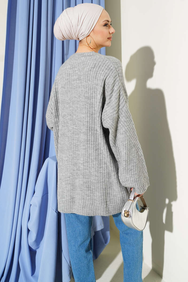Çizgi Kabartmalı Triko Tunik Gri