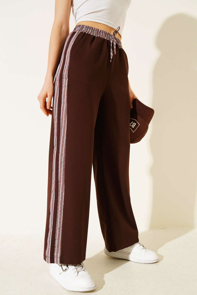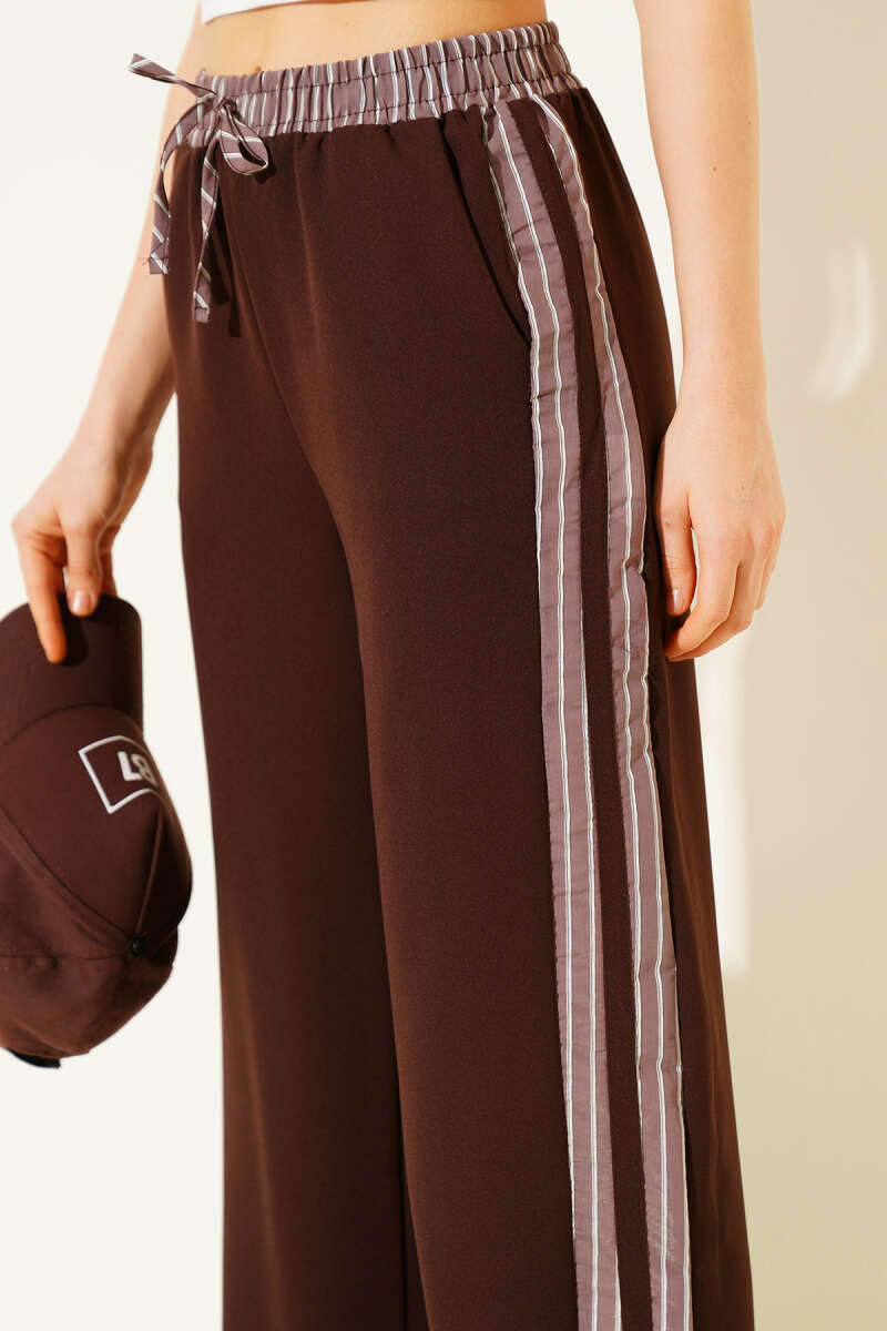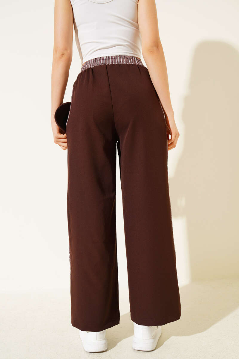 Bel Lastikli Şerit Güpürlü Etek Kahve