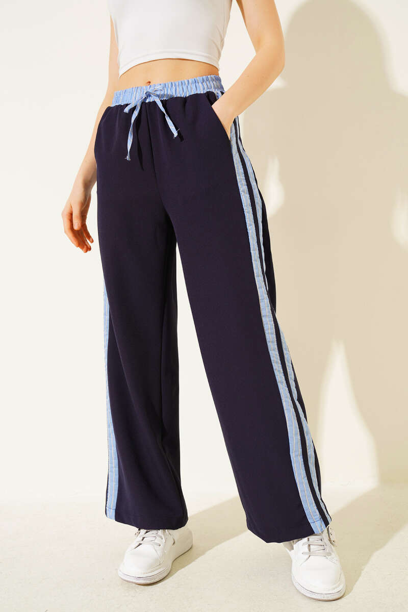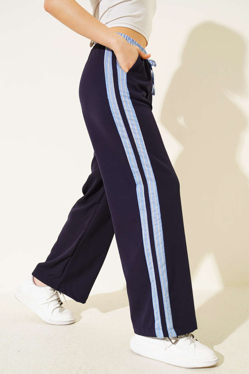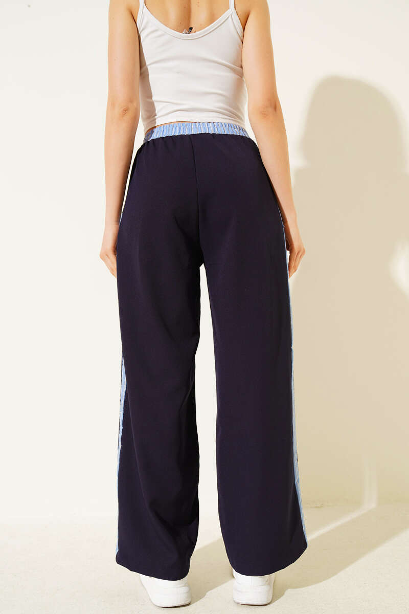 Kemerli Ekoseli Şifon Midi Etek Lacivert
