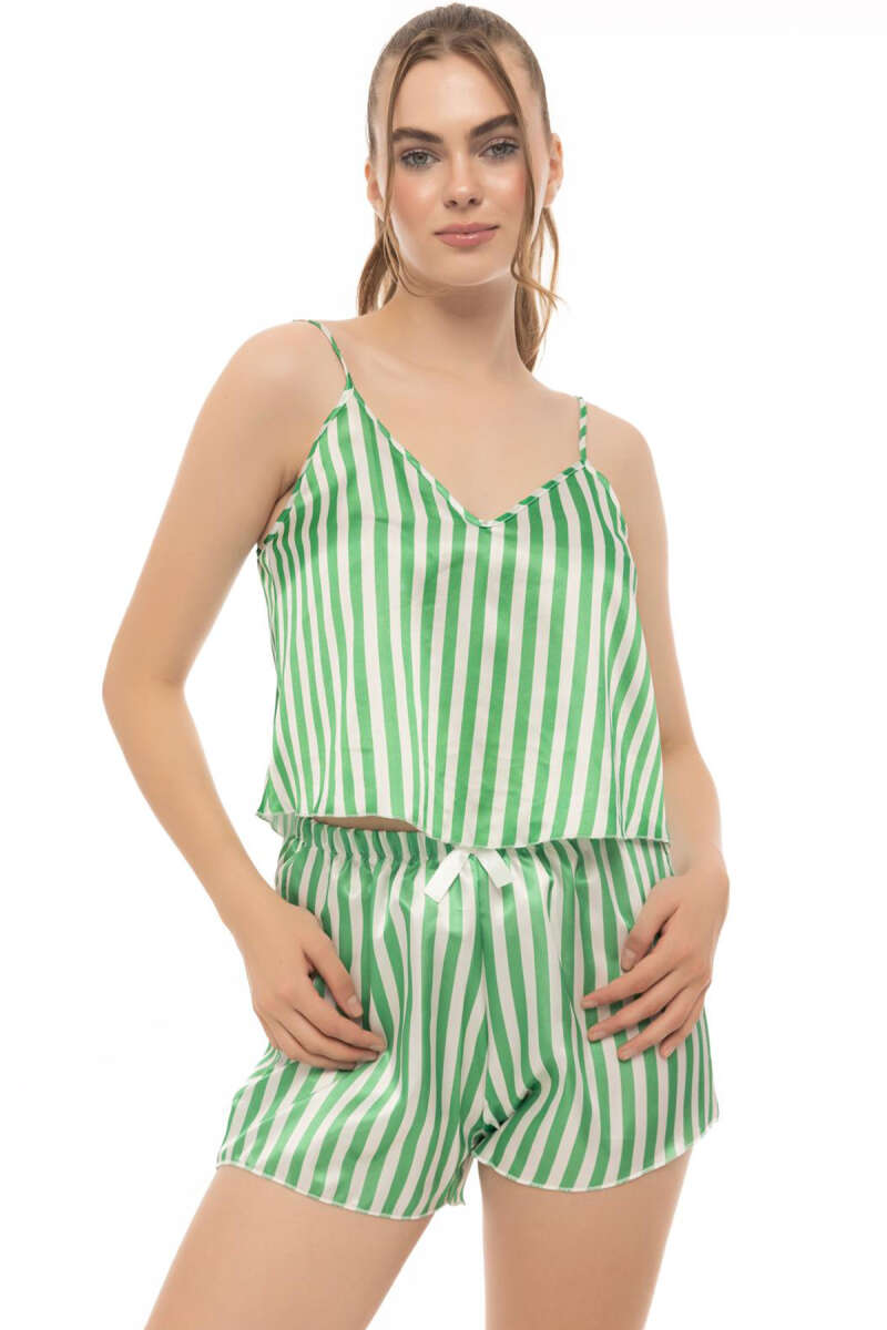Çizgili Askılı Saten Pijama Takımı Yeşil