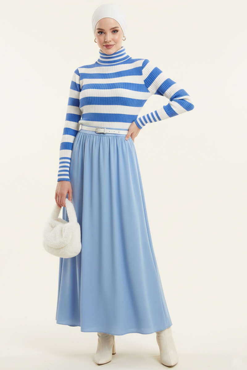 Bisiklet Yaka Fitilli Triko Elbise Bordo