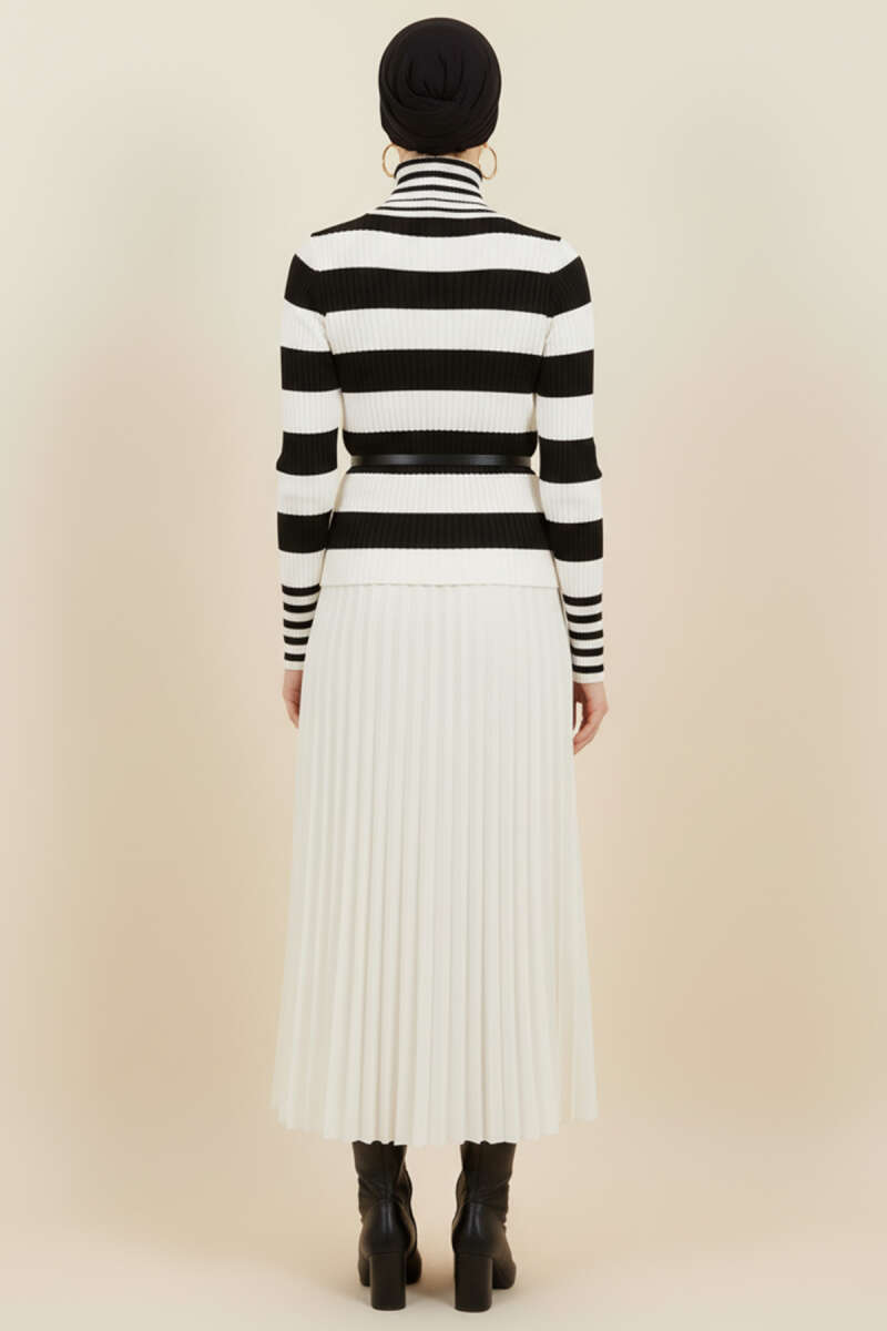 Çizgili Balıkçı Yaka Detaylı Triko Kazak Siyah