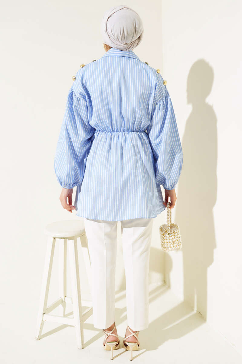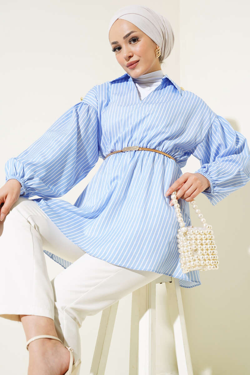 Yatay Çizgi Detaylı Triko Tunik Lacivert