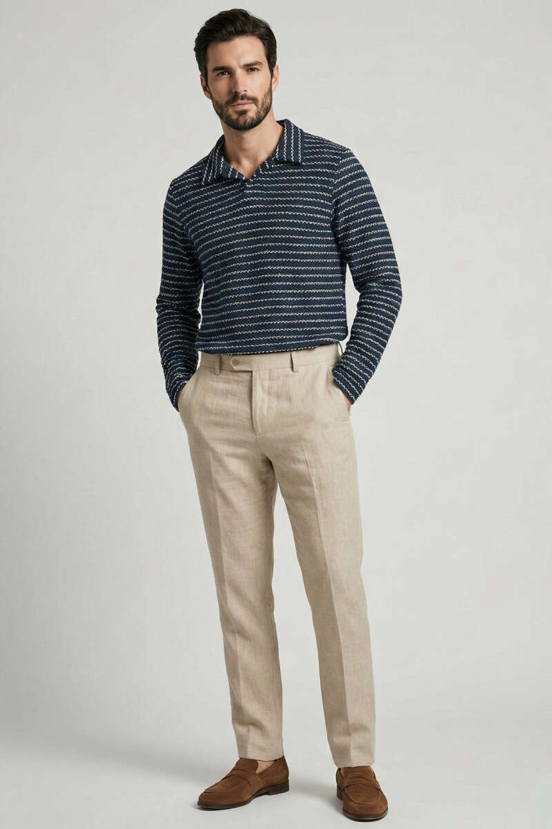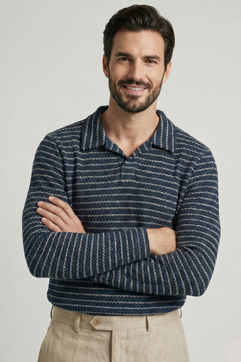 Çizgili Baskılı Erkek Triko Kazak Füme