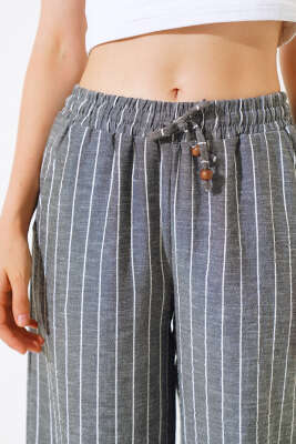 Çizgili Bel Lastikli Bürümcük Pantolon Çağla Yeşili