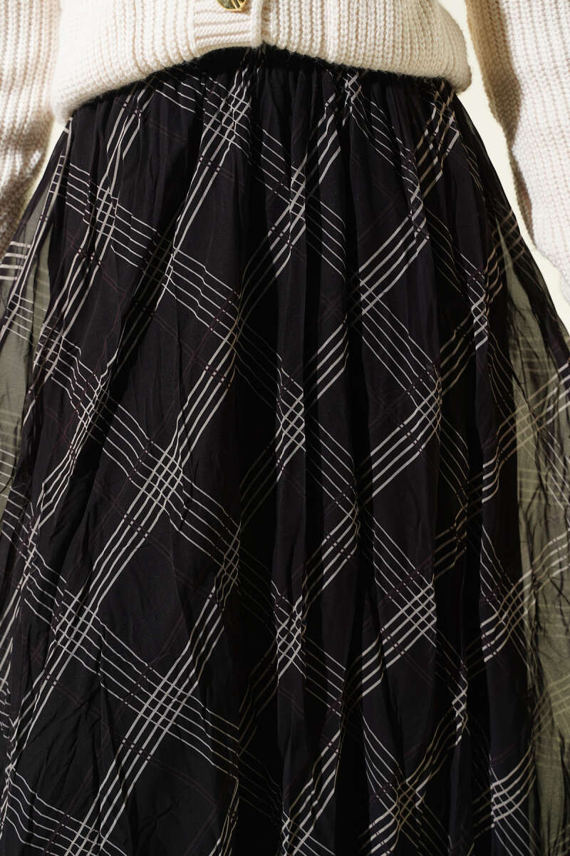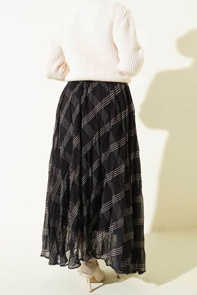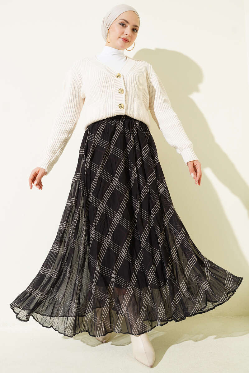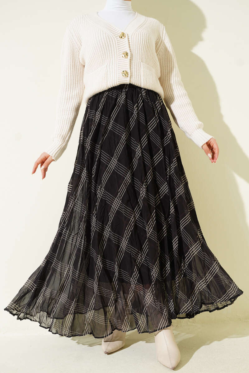 Pileli Ekoseli Fermuarlı Etek Siyah