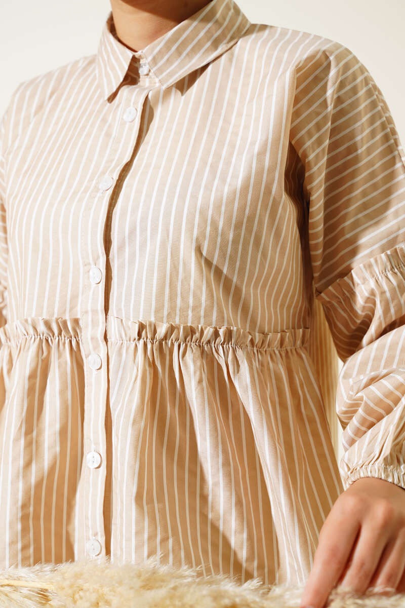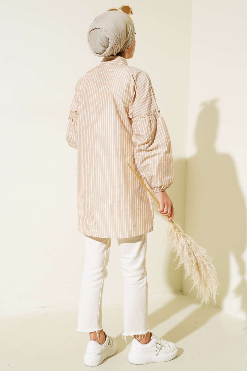 Gömlek Yaka Boy Düğmeli Tunik Saks