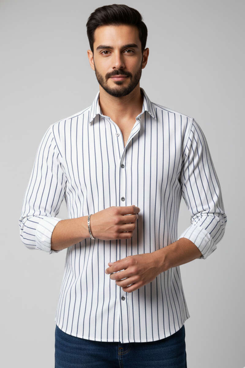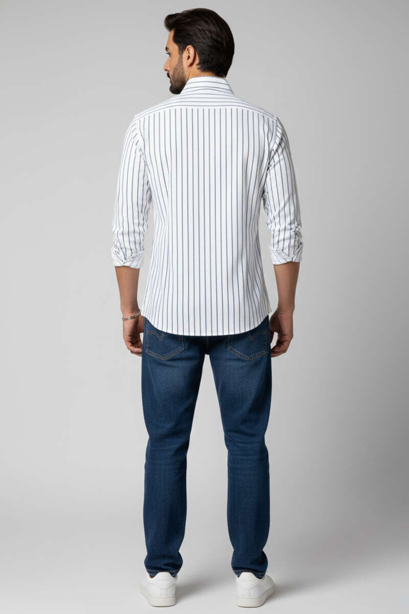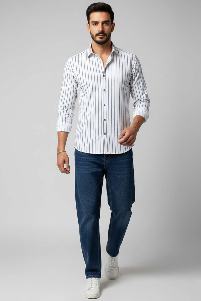 Jakar Desenli Dik Çizgili Erkek Gömlek Beyaz