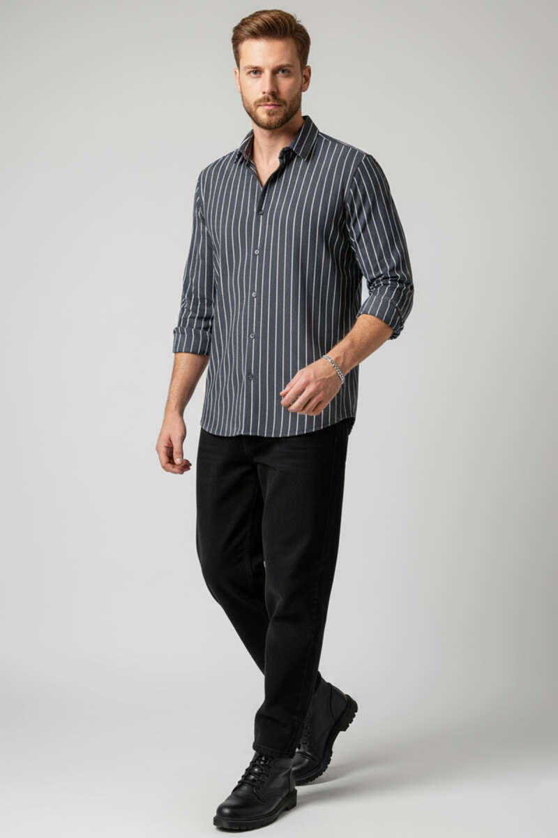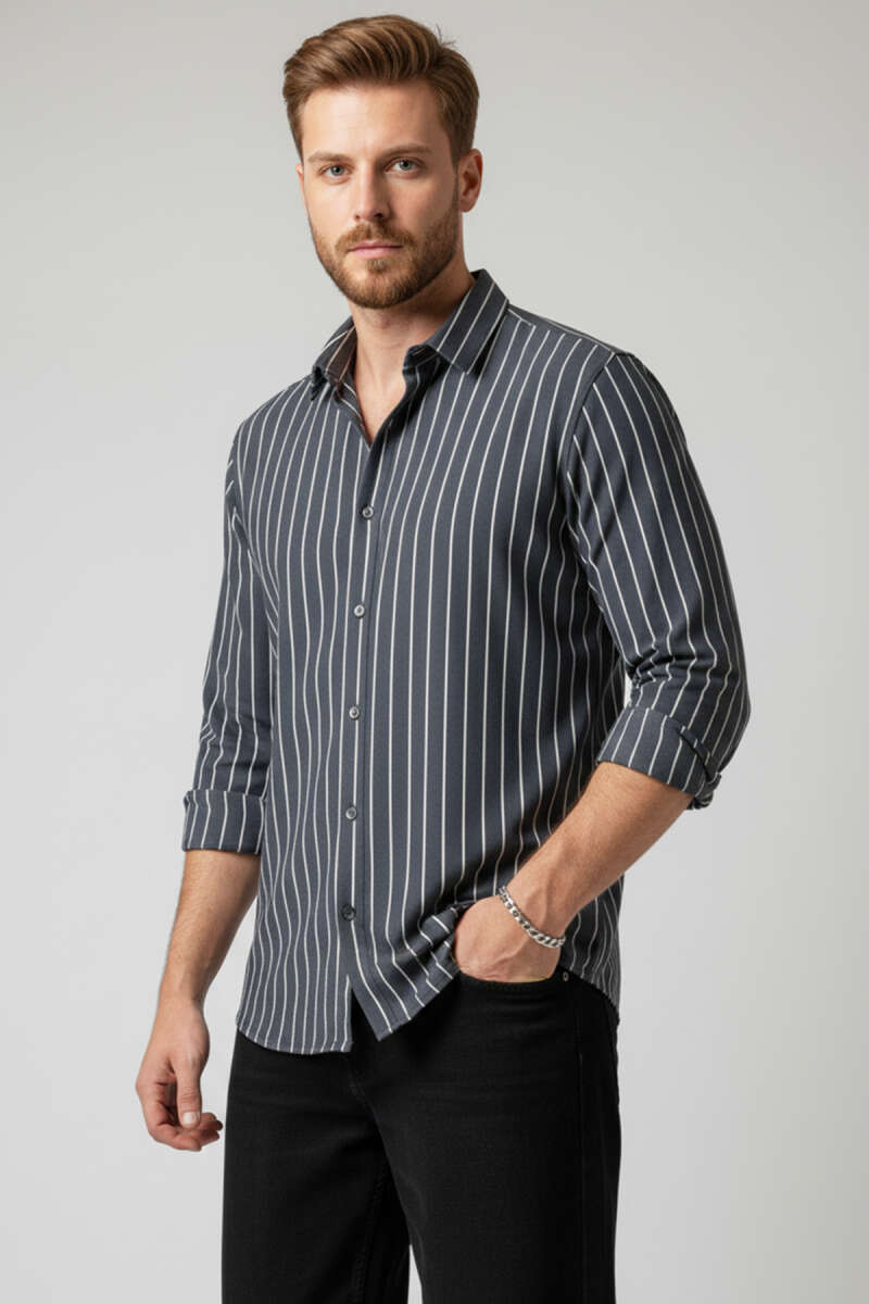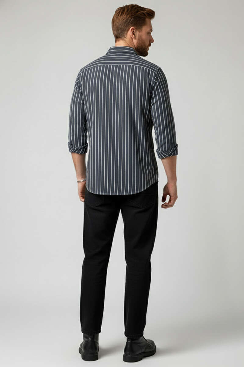 Çizgili Bilek Manşetli Erkek Gömlek Siyah