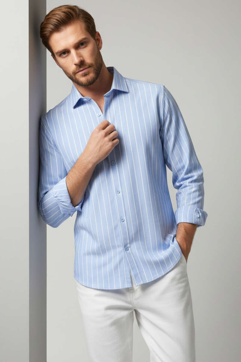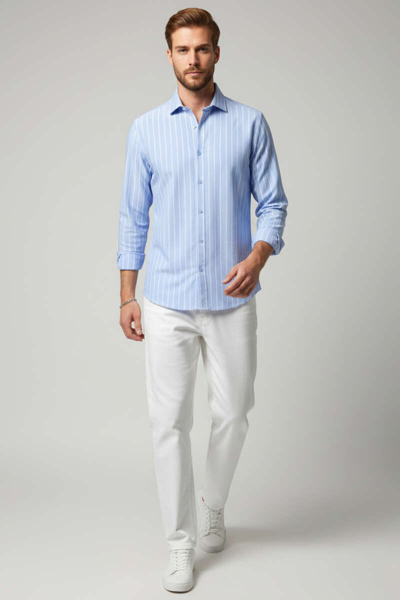 Çizgili Bilek Manşetli Erkek Gömlek Beyaz