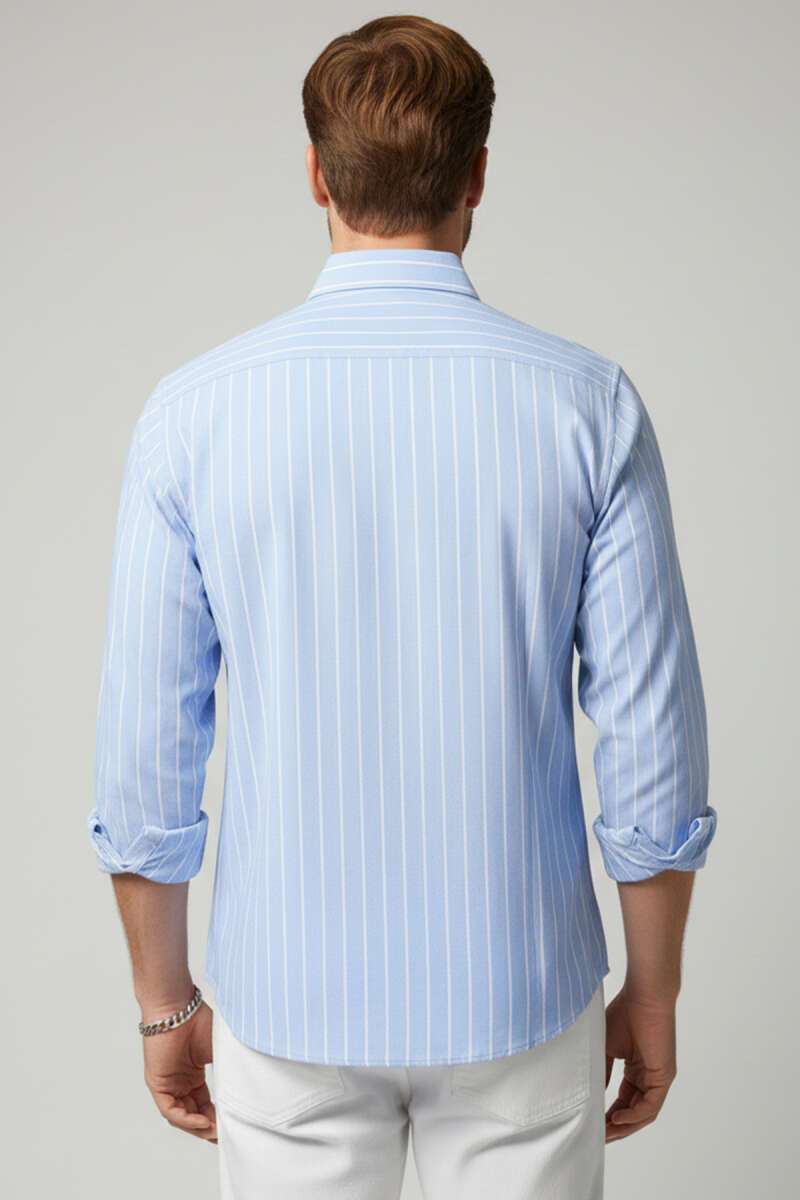Çizgili Bilek Manşetli Erkek Gömlek Lacivert