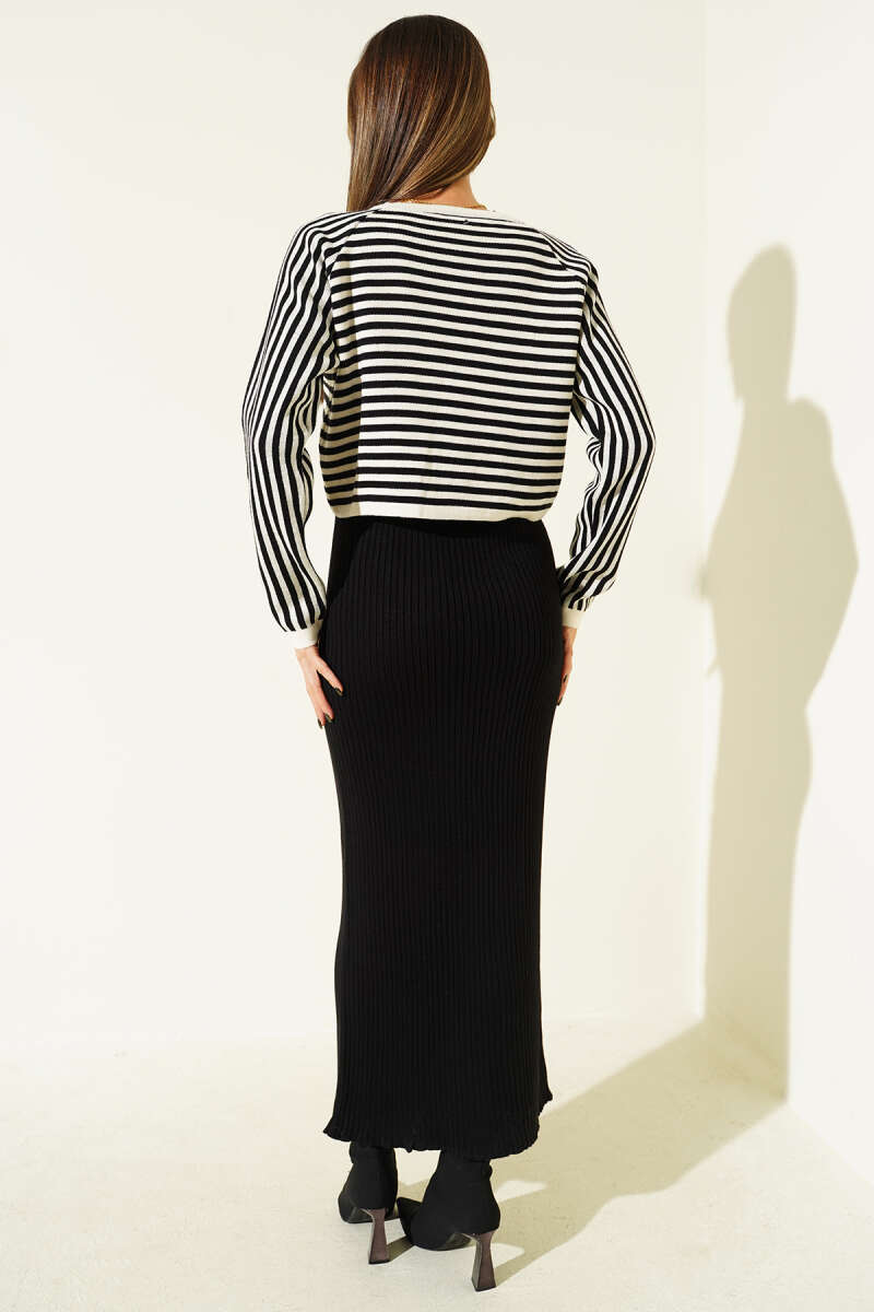 Çizgili Bolerolu Triko İkili Takım Siyah