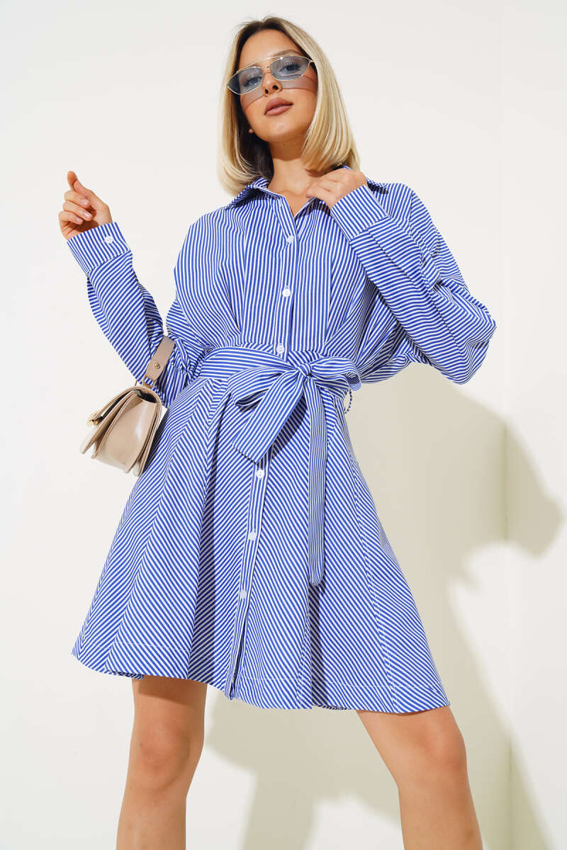 Fırfır Detaylı Kuşaklı Elbise Kahve