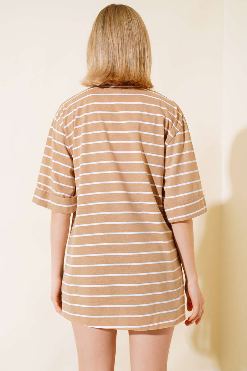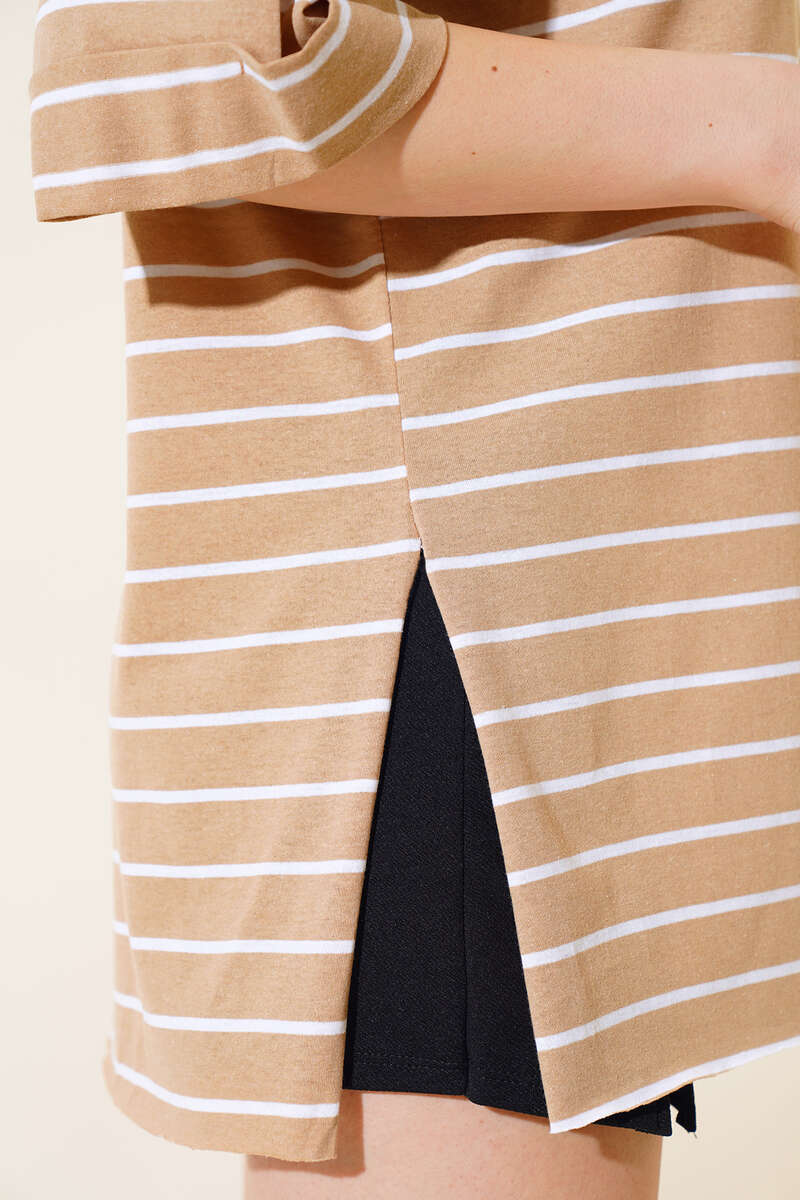 Bu yaz tarzıyla fark yaratan tshirtümüz çizgili desenleriyle dikkat çekmektedir. Oval yaka olan tshirt modelimizin yanları yırtmaçlıdır. Renk seçenekleri mevcuttur.