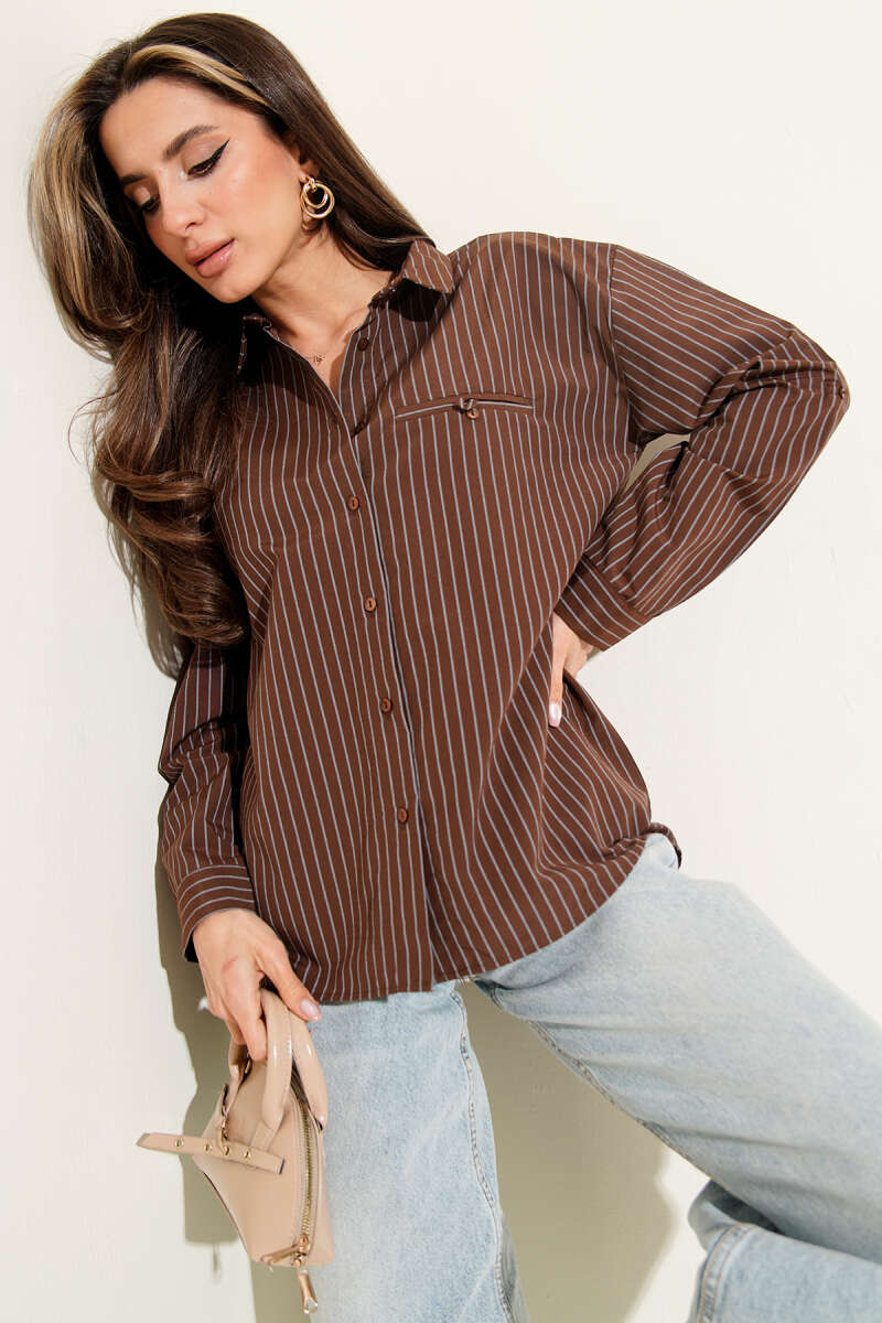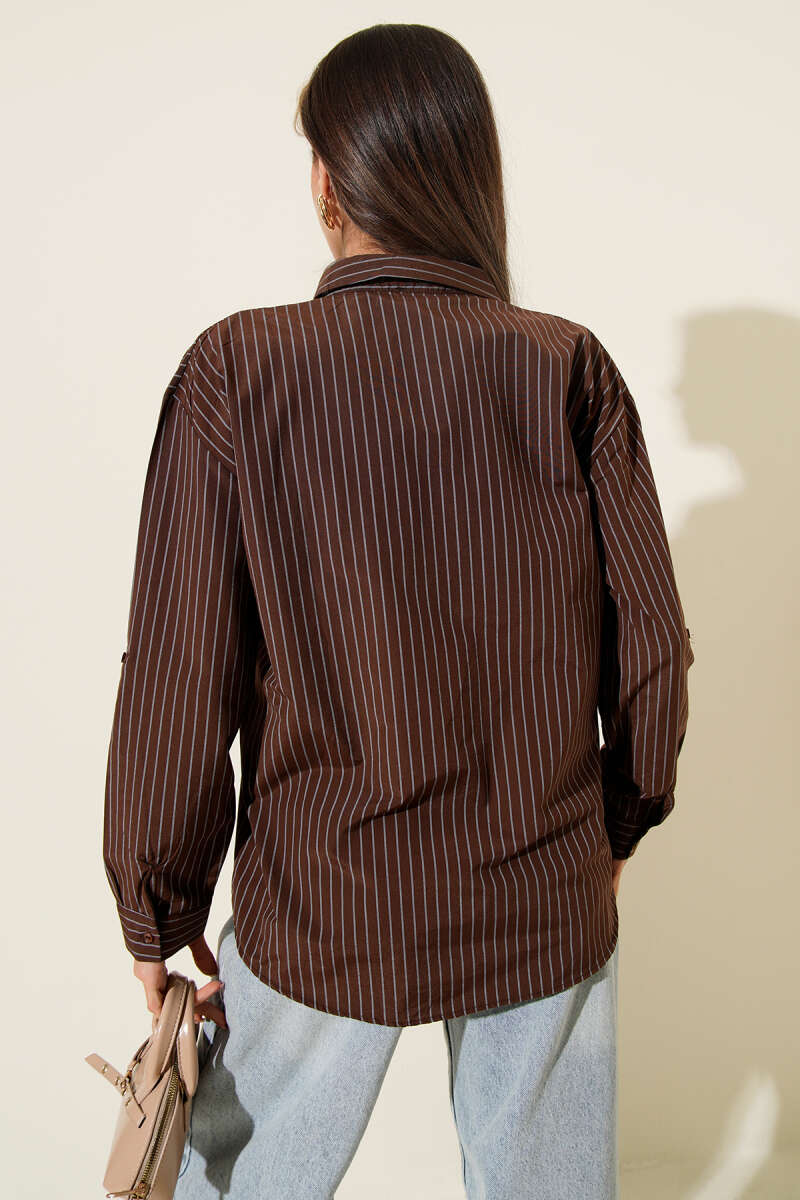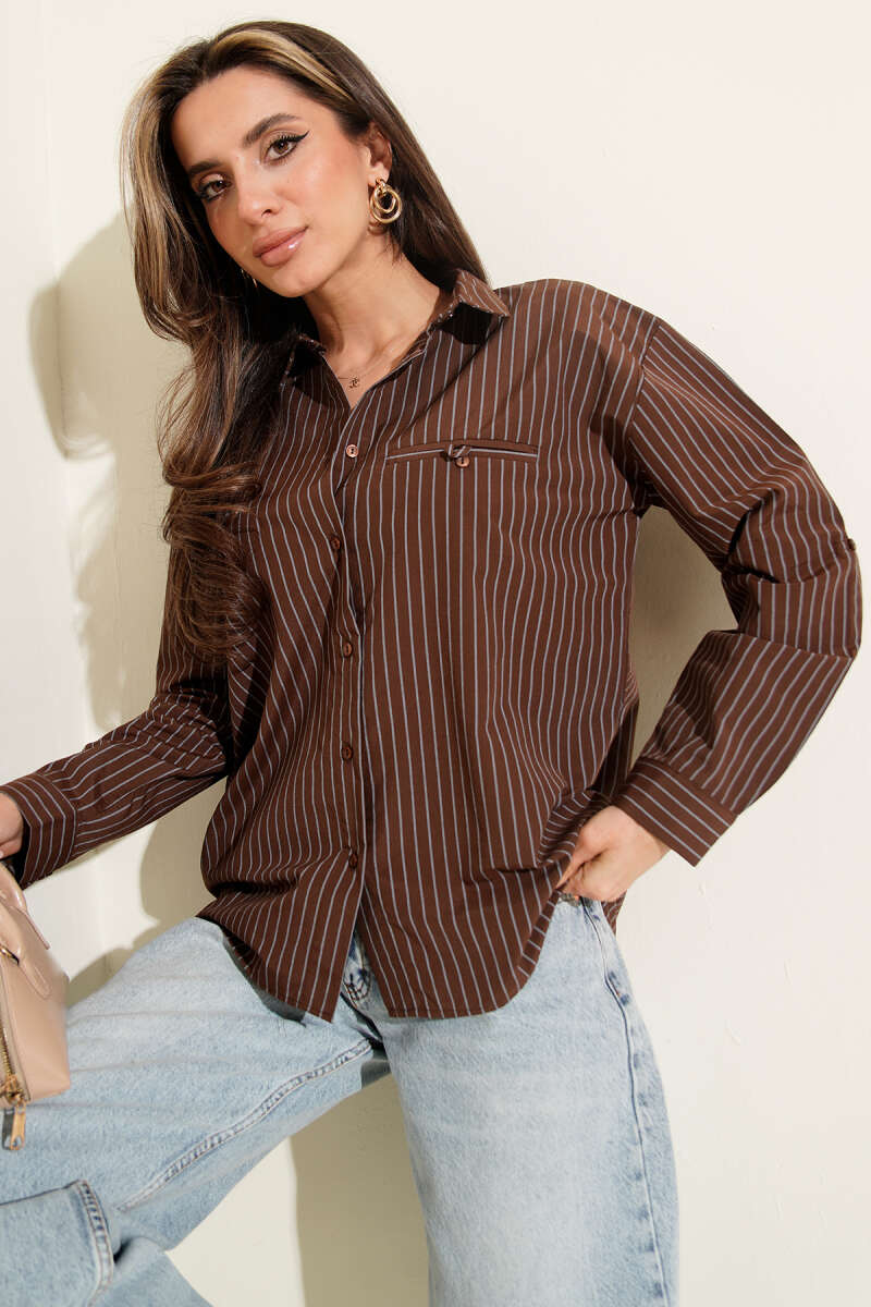 Çizgili Cep Görünümlü Gömlek Kahve
