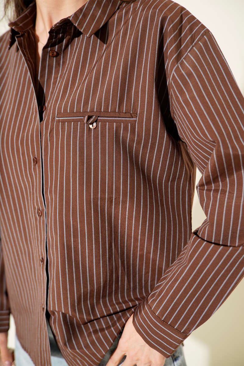 Çizgili Cep Görünümlü Gömlek Kestane