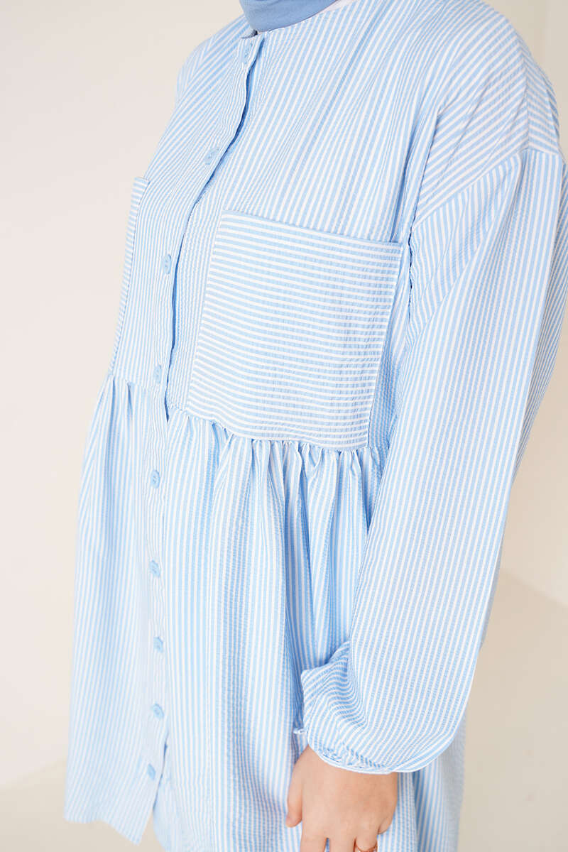 Çizgili Çift Cepli Gofre Gömlek Mavi