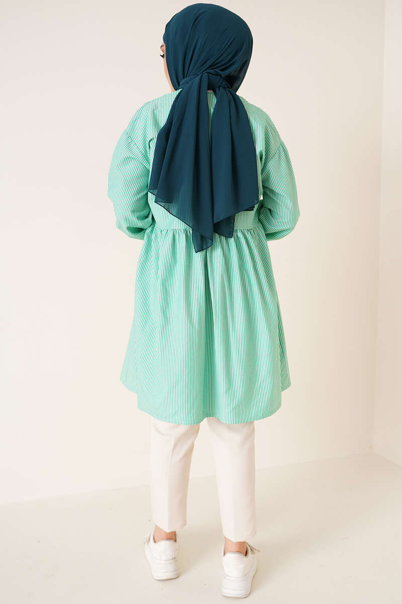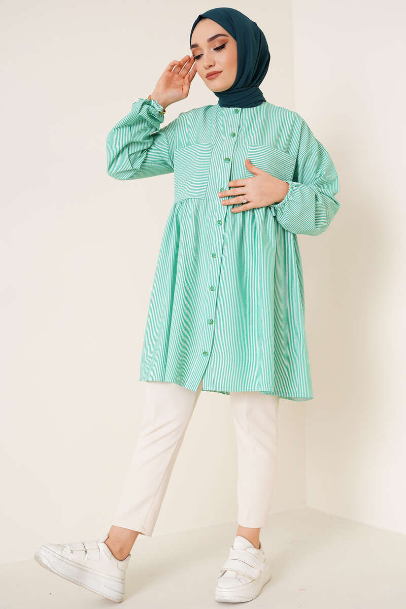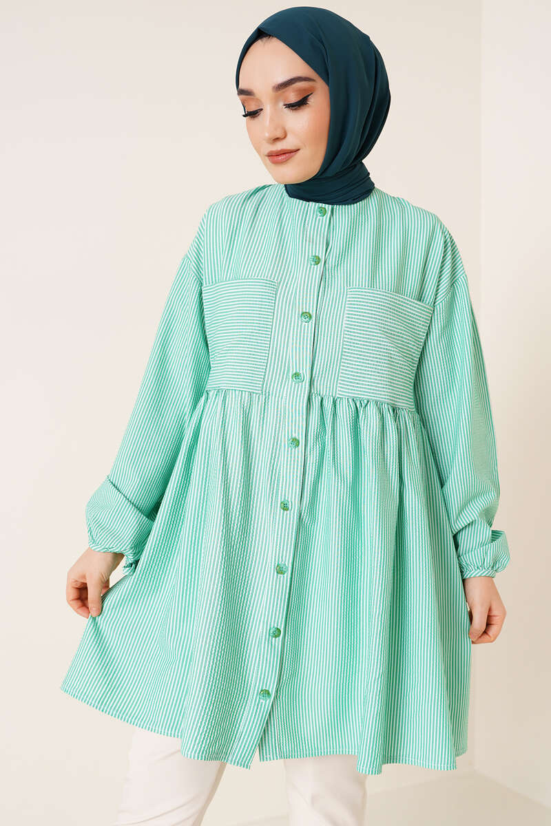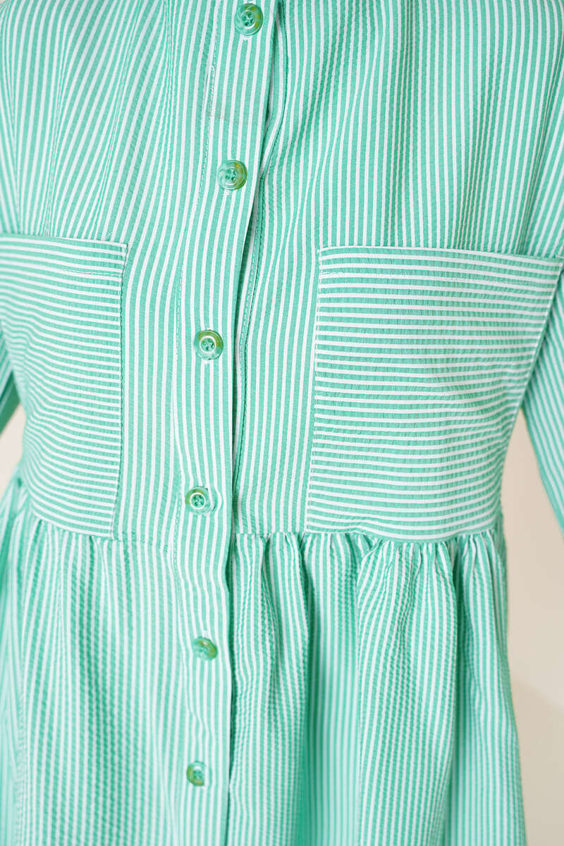 Çizgili Çift Cepli Gofre Gömlek Yeşil