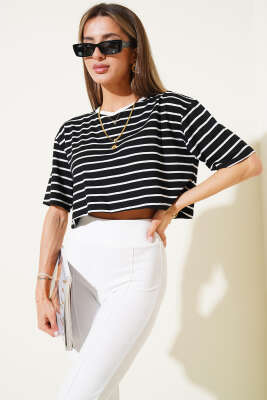 Yatay Çizgili Fitilli Triko Tunik Kahve