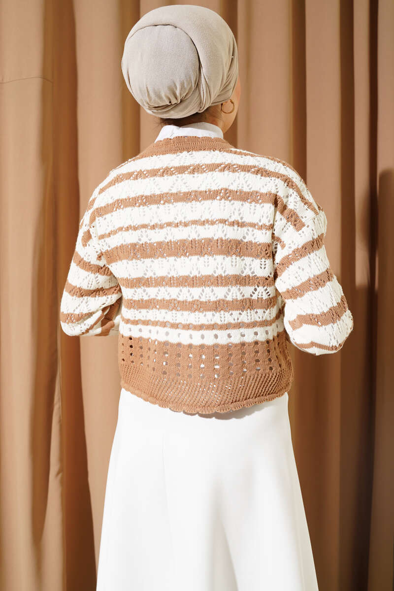 Çizgili Delikli Triko Kazak Büsküvi