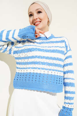 Ajur Detaylı Düğmeli Kısa Triko Hırka Taş