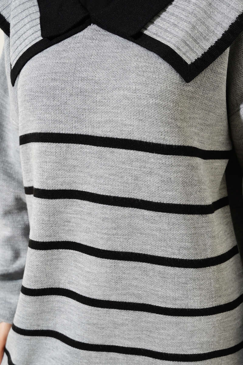 Dik Çizgili Etekli Triko İkili Takım Kahve