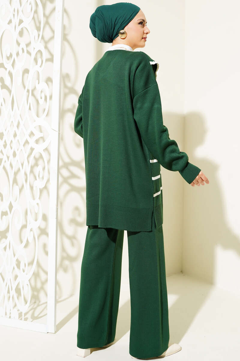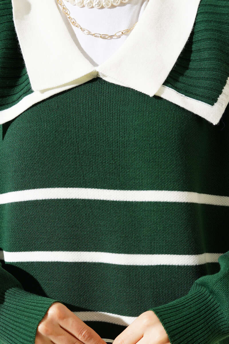 Çizgili Denizci Yaka Triko İkili Takım Nefti