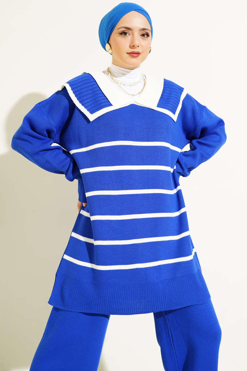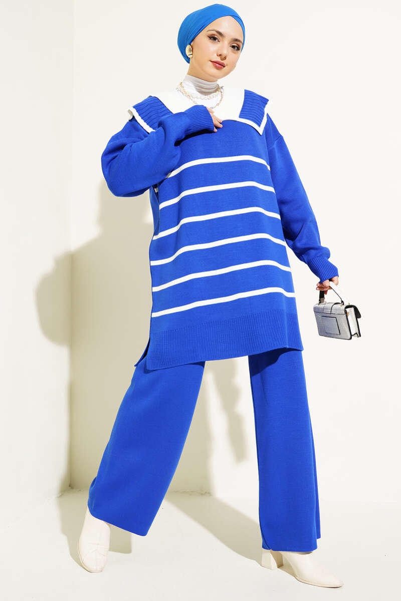 Yaka Kürklü Fermuarlı Triko İkili Takım Lacivert