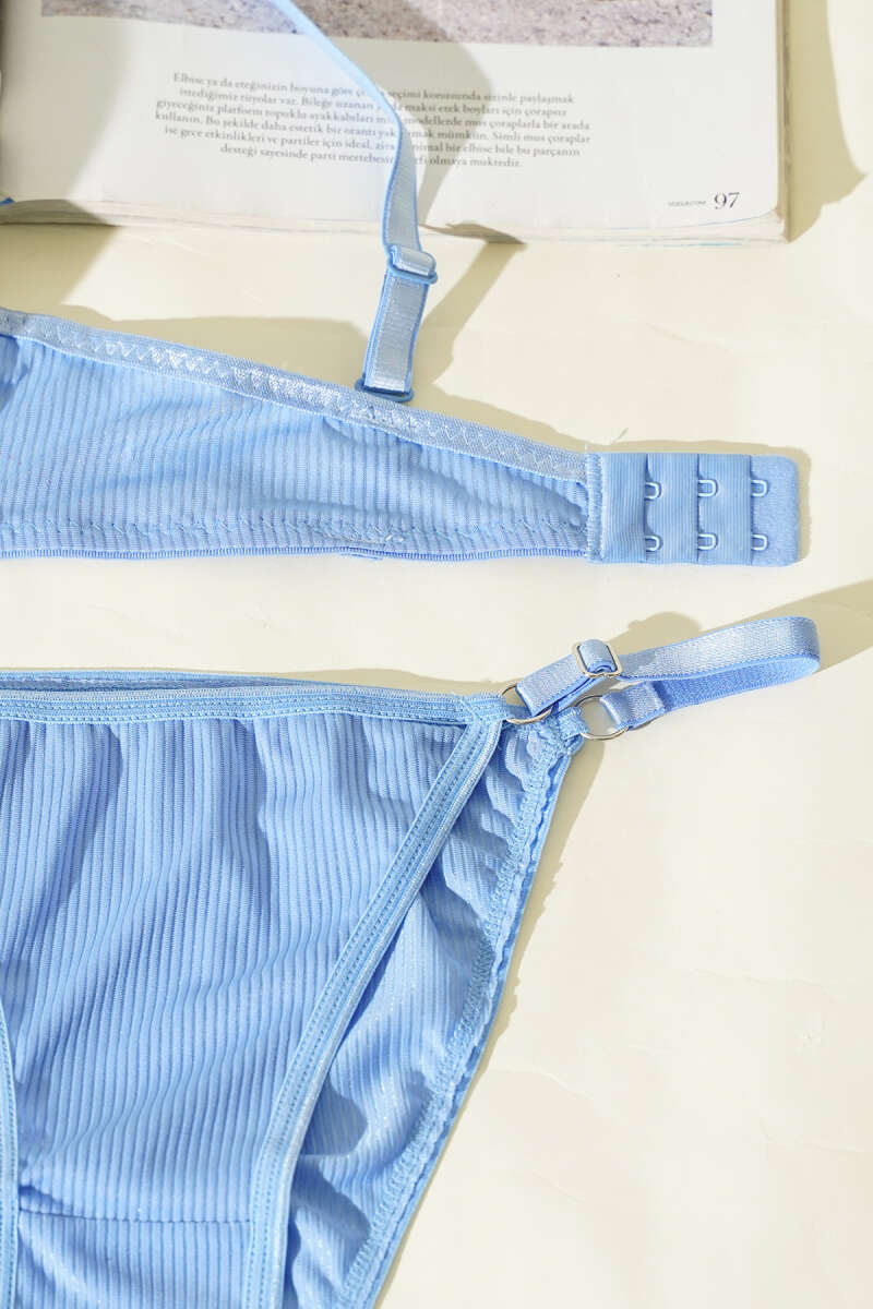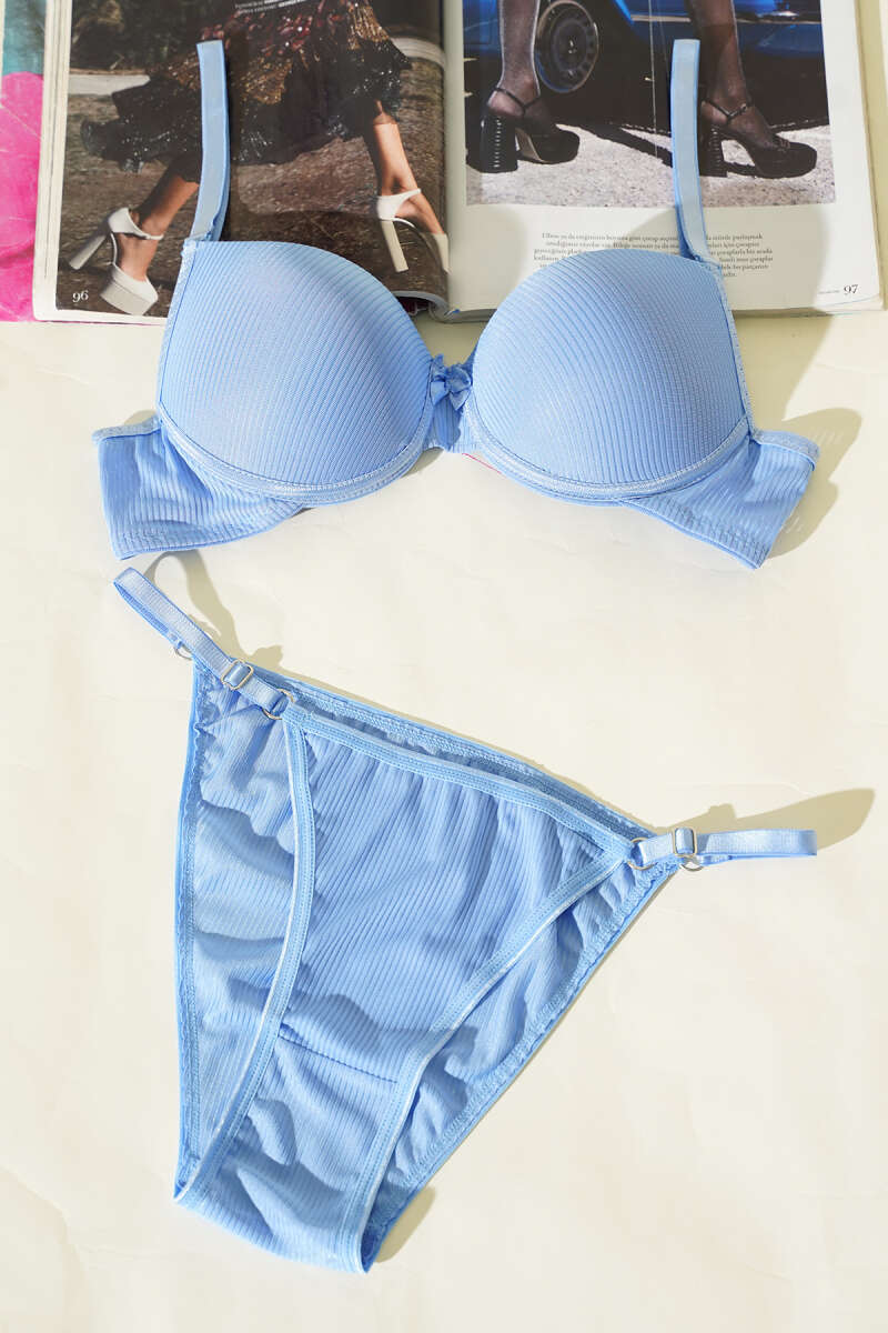 Çizgili Destekli Sütyen Takımı Bebe Mavi