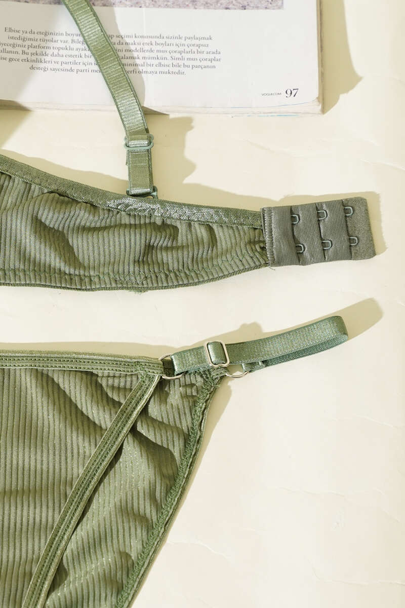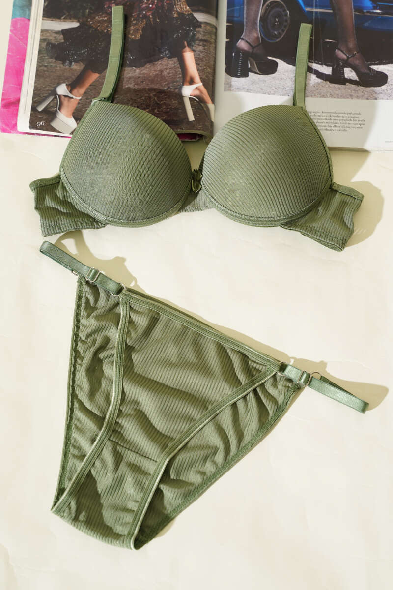 Çizgili Destekli Sütyen Takımı Haki