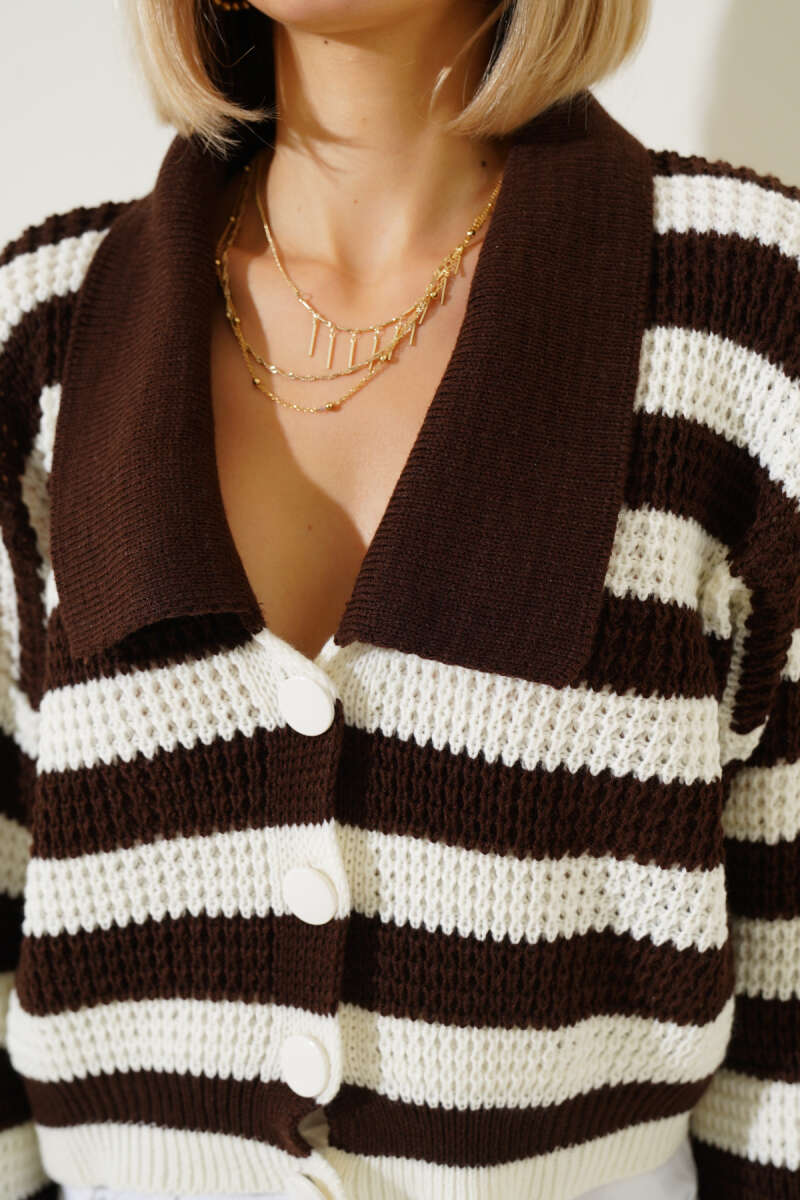Kol Ucu Düğmeli Şal Yaka Triko Hırka Füme