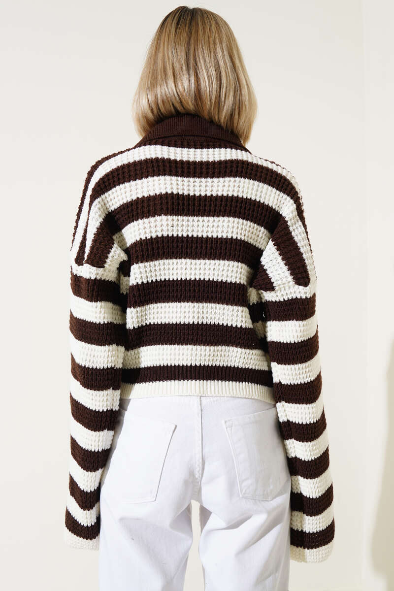 Yatay Çizgi Detaylı Basic Triko Tunik Bej Gri