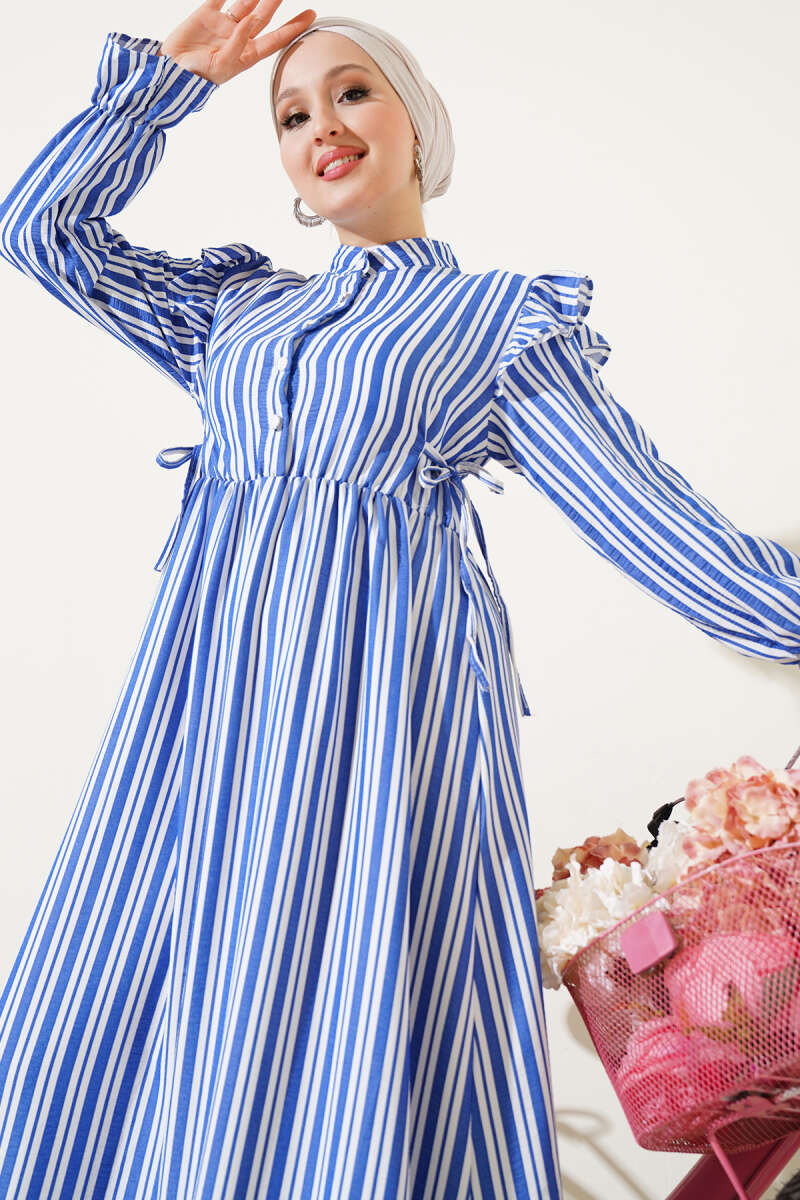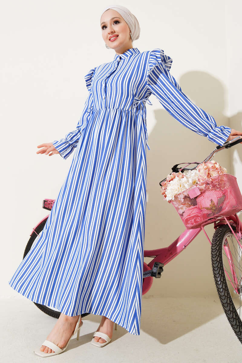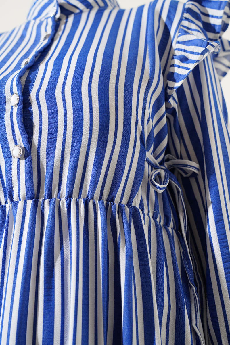 İp Kuşaklı Ajurlu Triko Elbise Lacivert