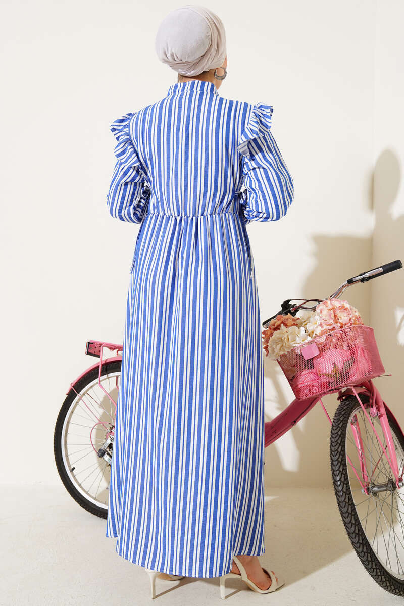 Omuz Pelerin Detaylı Abiye Elbise Lacivert