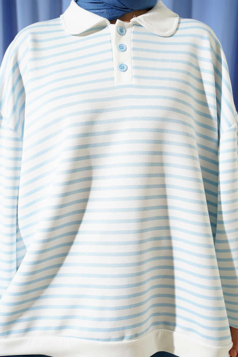 Çizgili Düğmeli Oversize Sweatshirt Bebe Mavi
