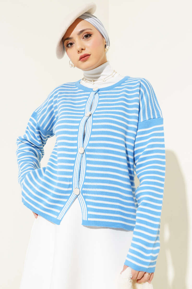 Örgü Düğmeli Kısa Hırka Nefti