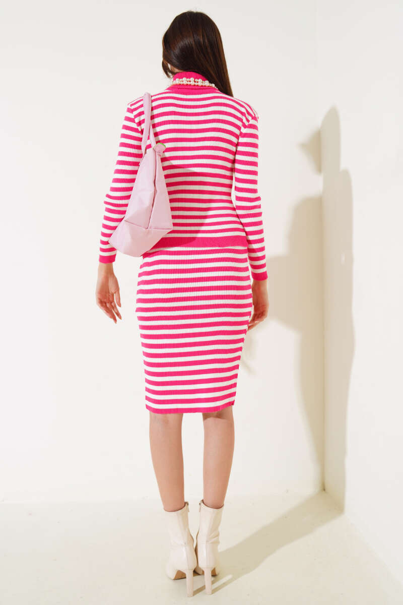 İnci Süslemeli Etekli Triko İkili Takım Büsküvi