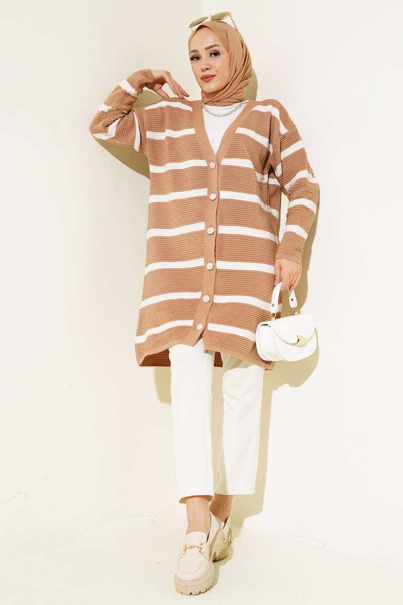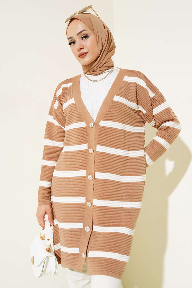 Basic Düğme Detaylı Triko Hırka Kahve