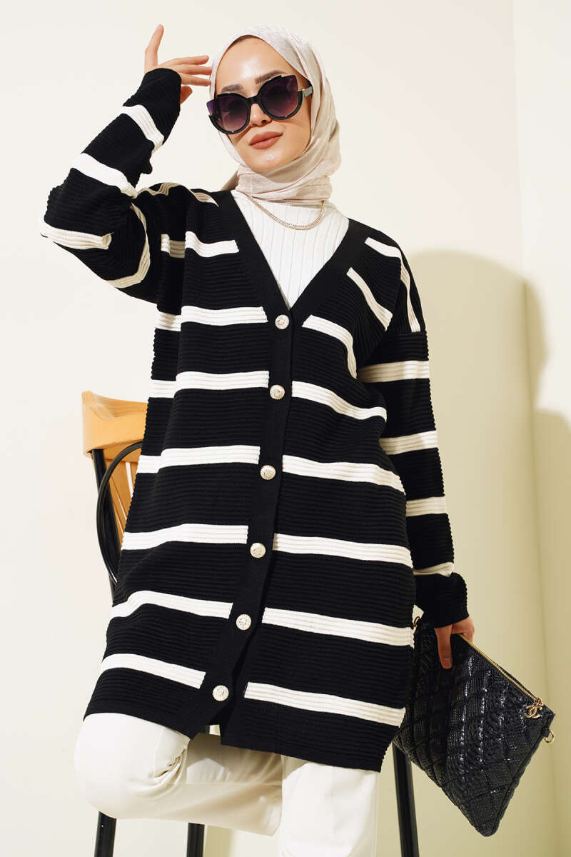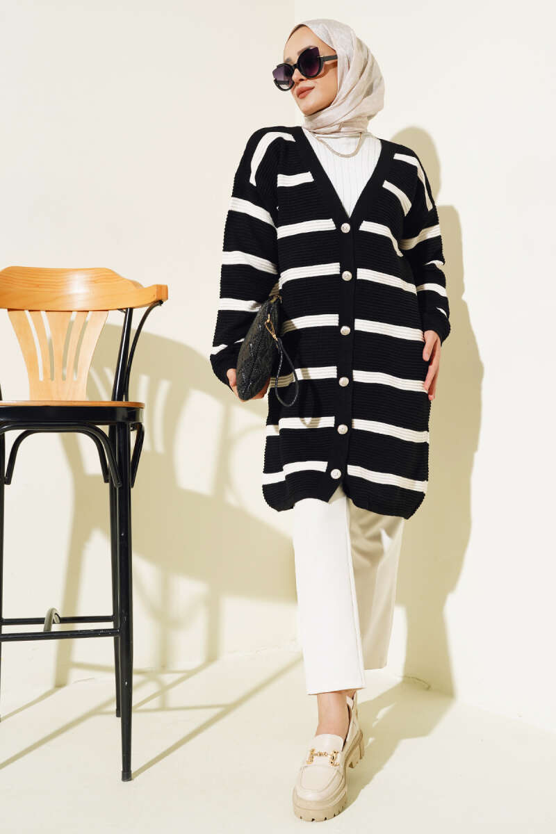Basic Düğme Detaylı Triko Hırka Siyah