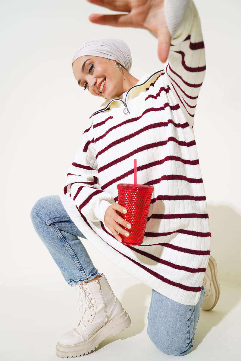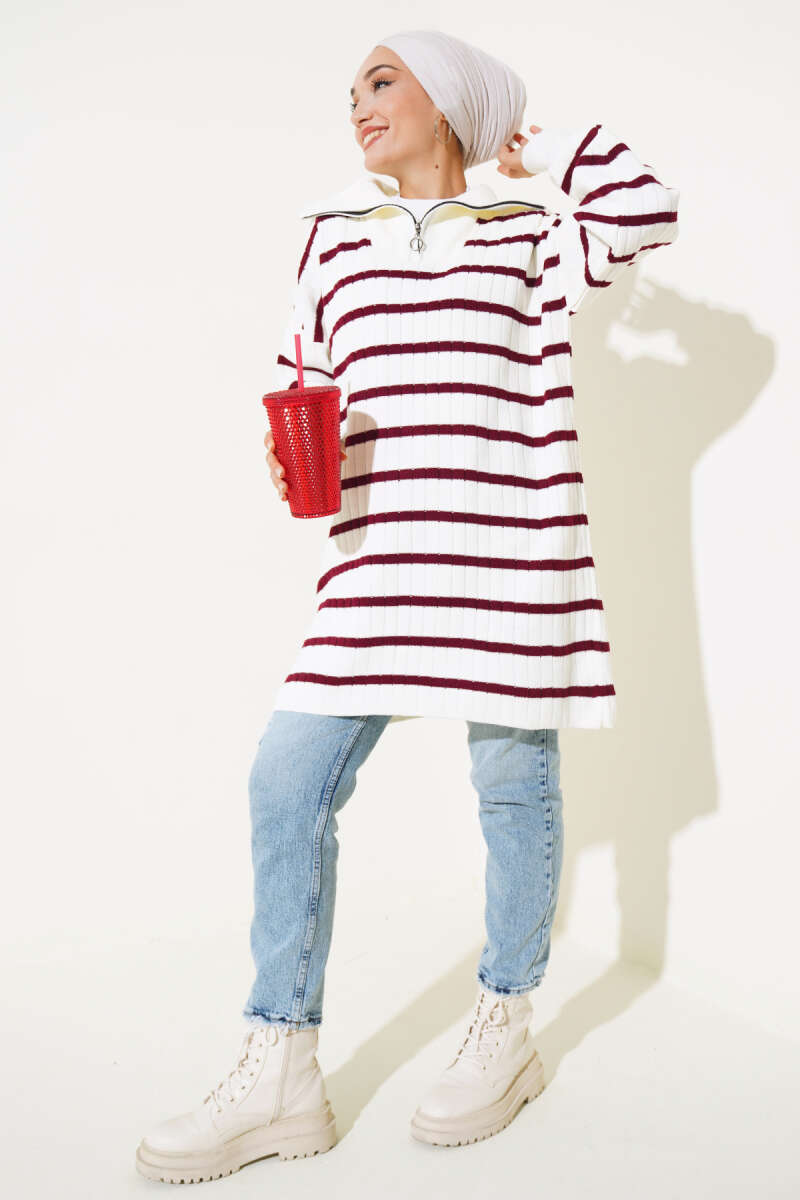Basic Oversize Triko Tunik Bordo