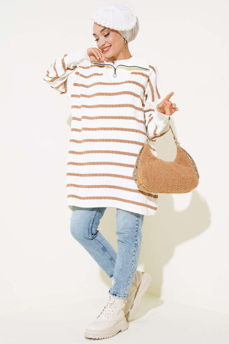 Basic Oversize Triko Tunik Acı Kahve