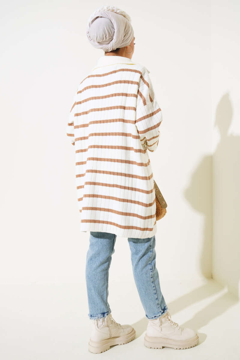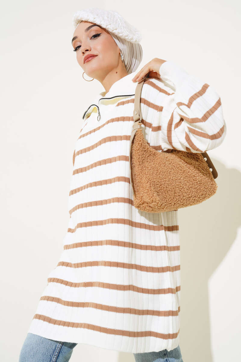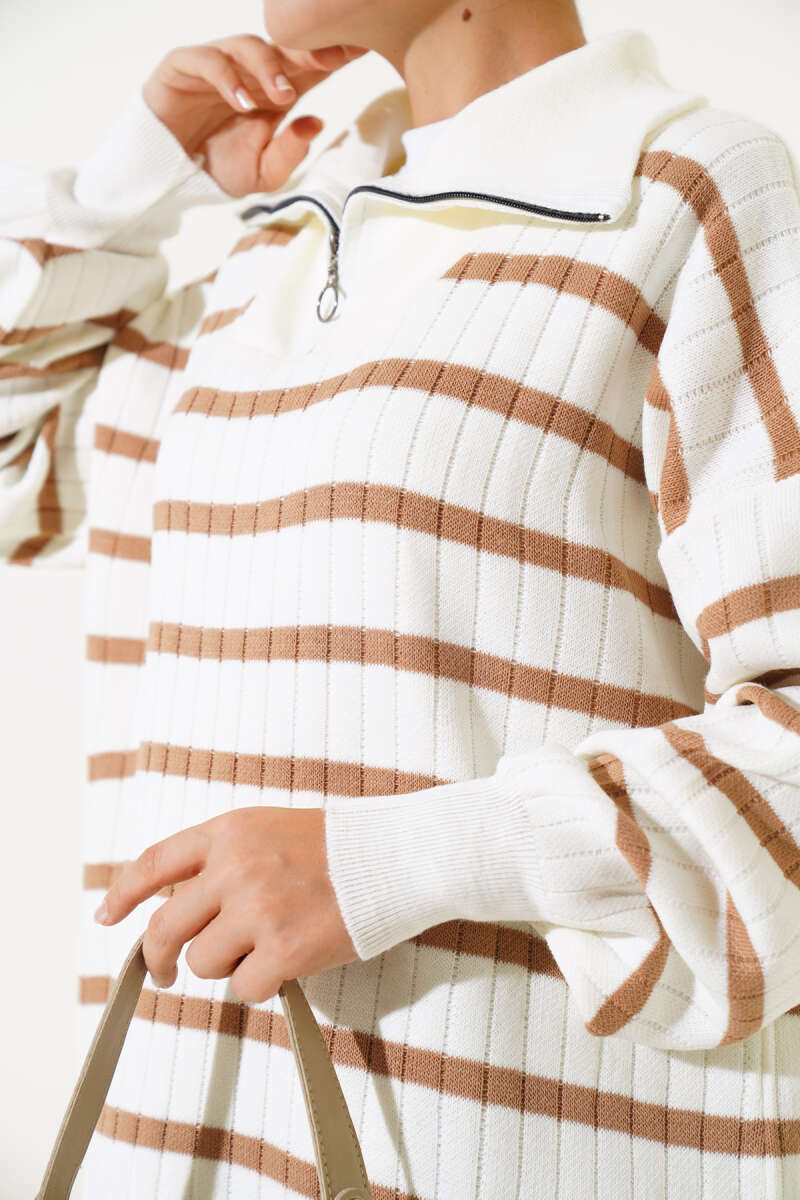 Yarım Fermuarlı Loyşa Şeritli İkili Takım Füme