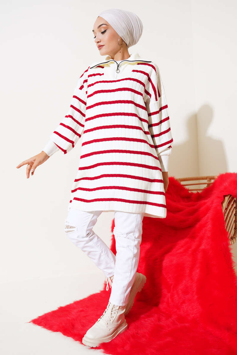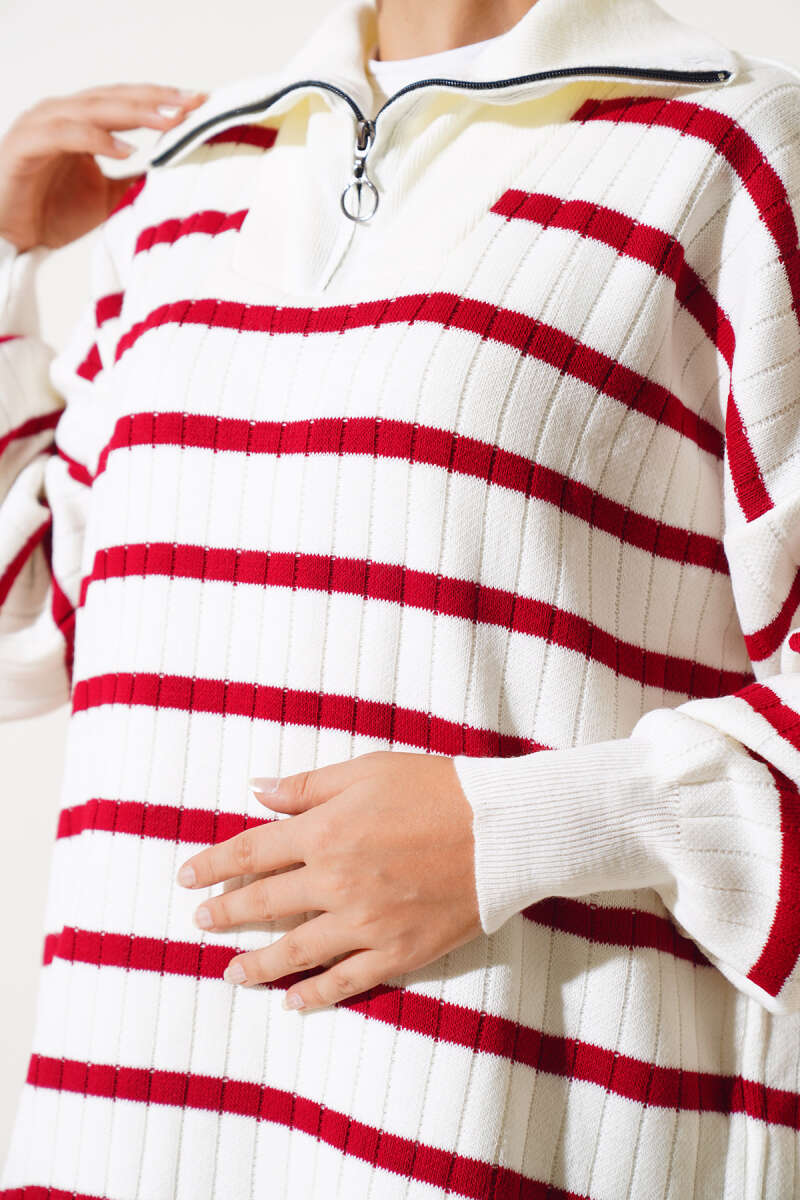 Yarım Fermuarlı Loyşa Şeritli İkili Takım Füme