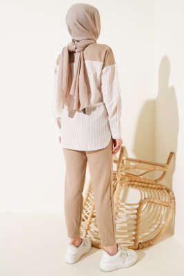 Çizgili Garnili Tunik İkili Takım Latte
