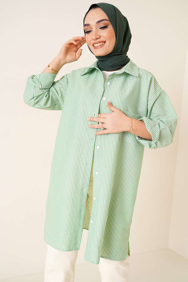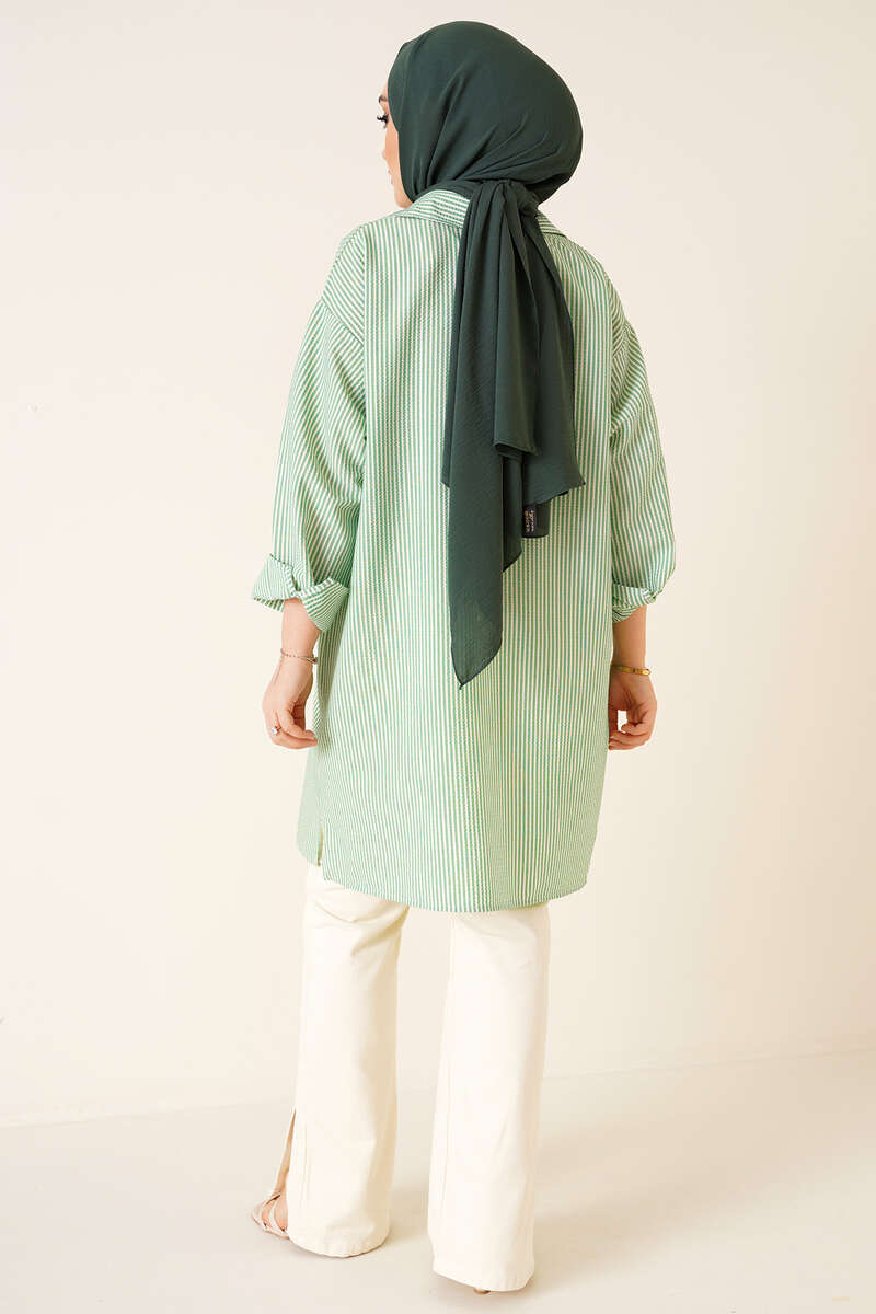 Çizgili Gofre Kumaş Yeşil Gömlek