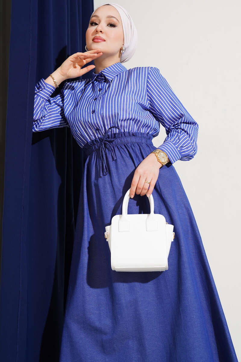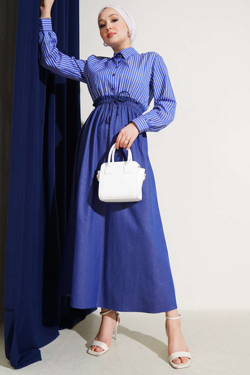 Bel Büzgü Detaylı Abiye Elbise Lacivert
