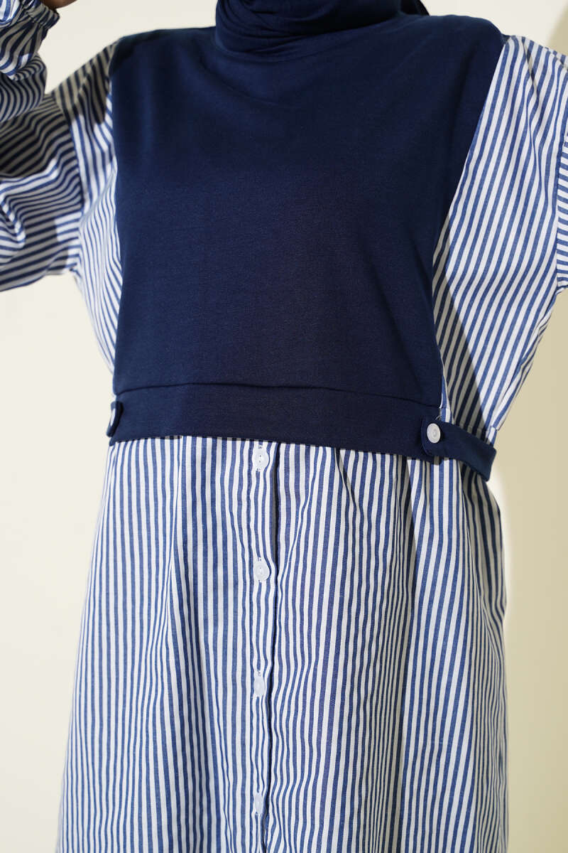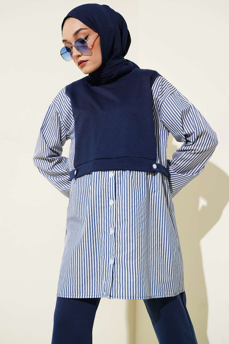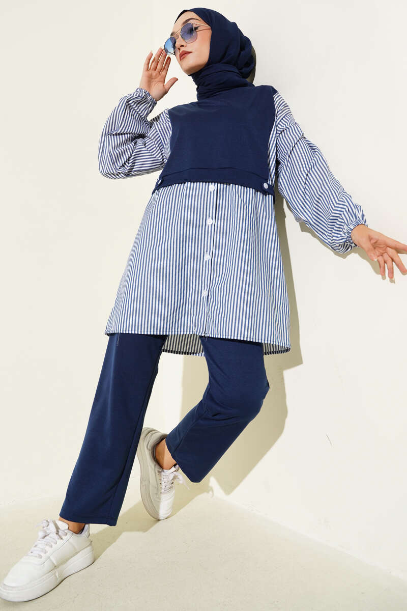 Çizgili Gömlek Garnili İkili Takım Lacivert