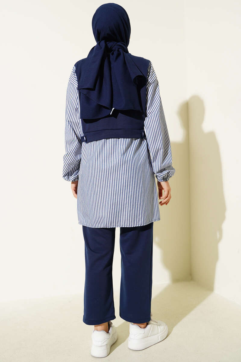 Çizgili Gömlek Garnili İkili Takım Mavi