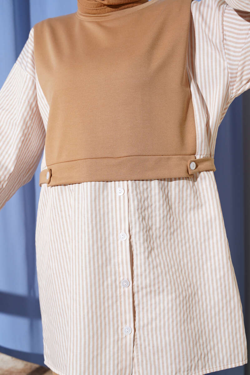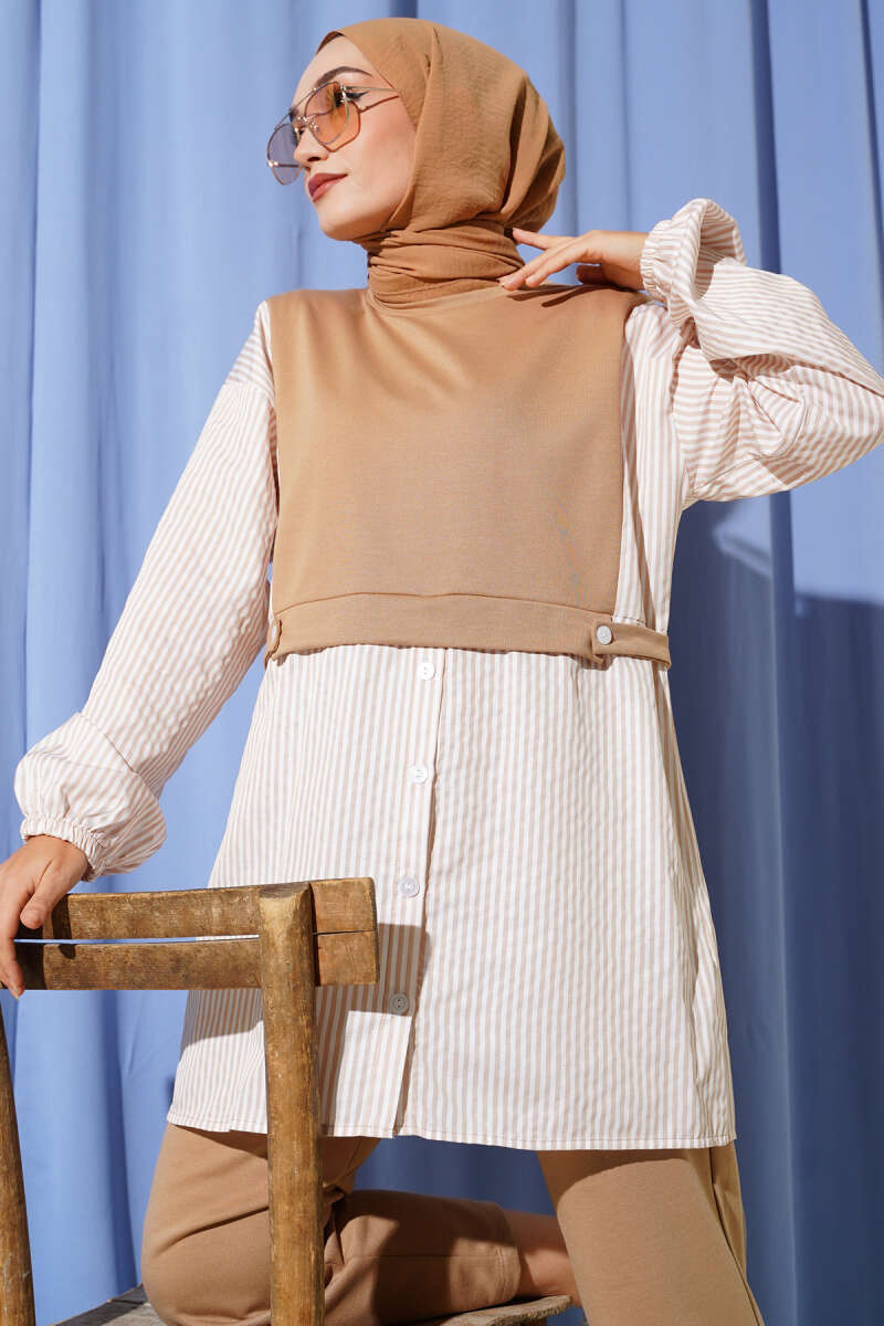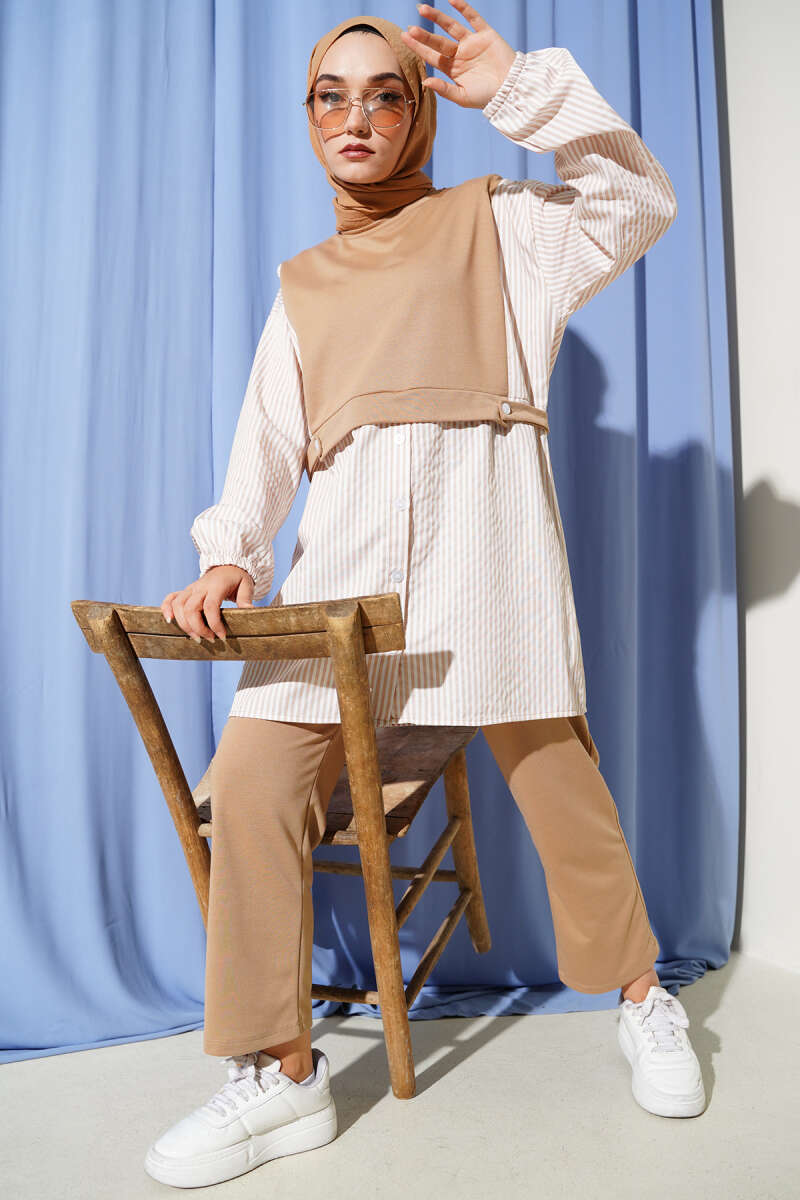 Çizgili Gömlek Garnili İkili Takım Mavi