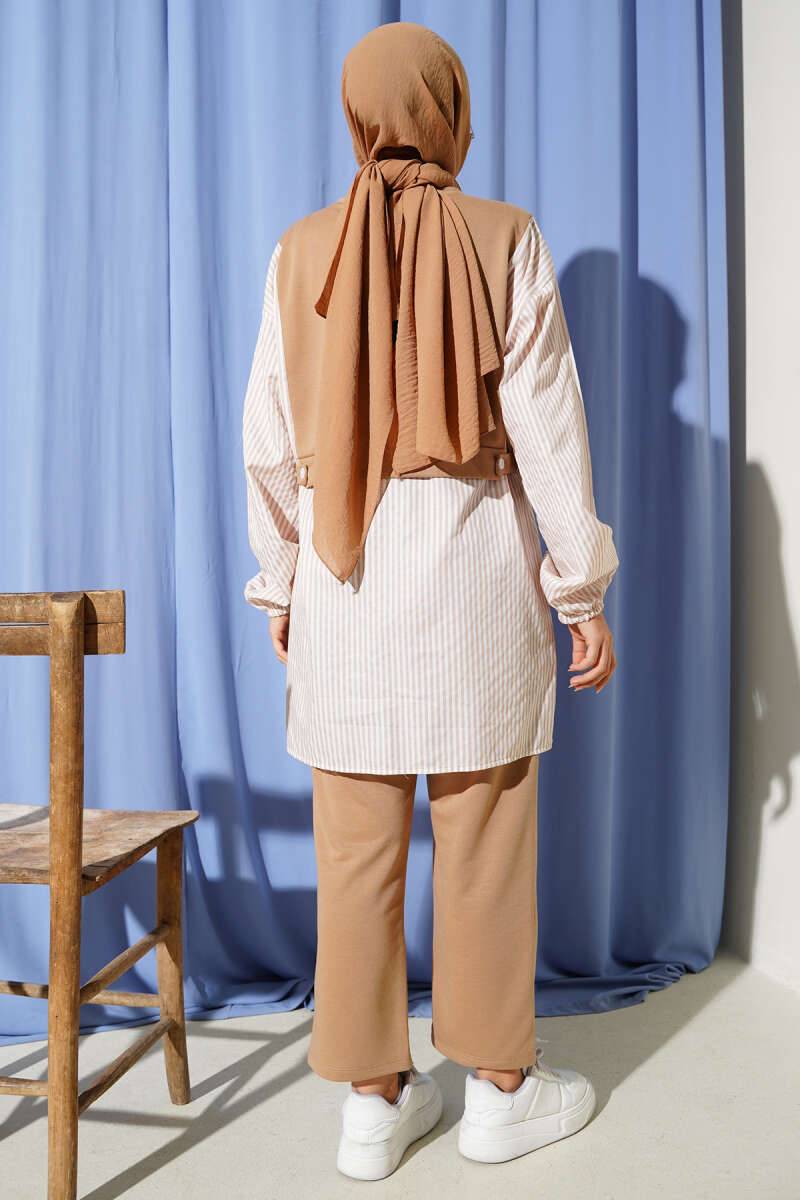 Çizgili Gömlek Garnili İkili Takım Bordo